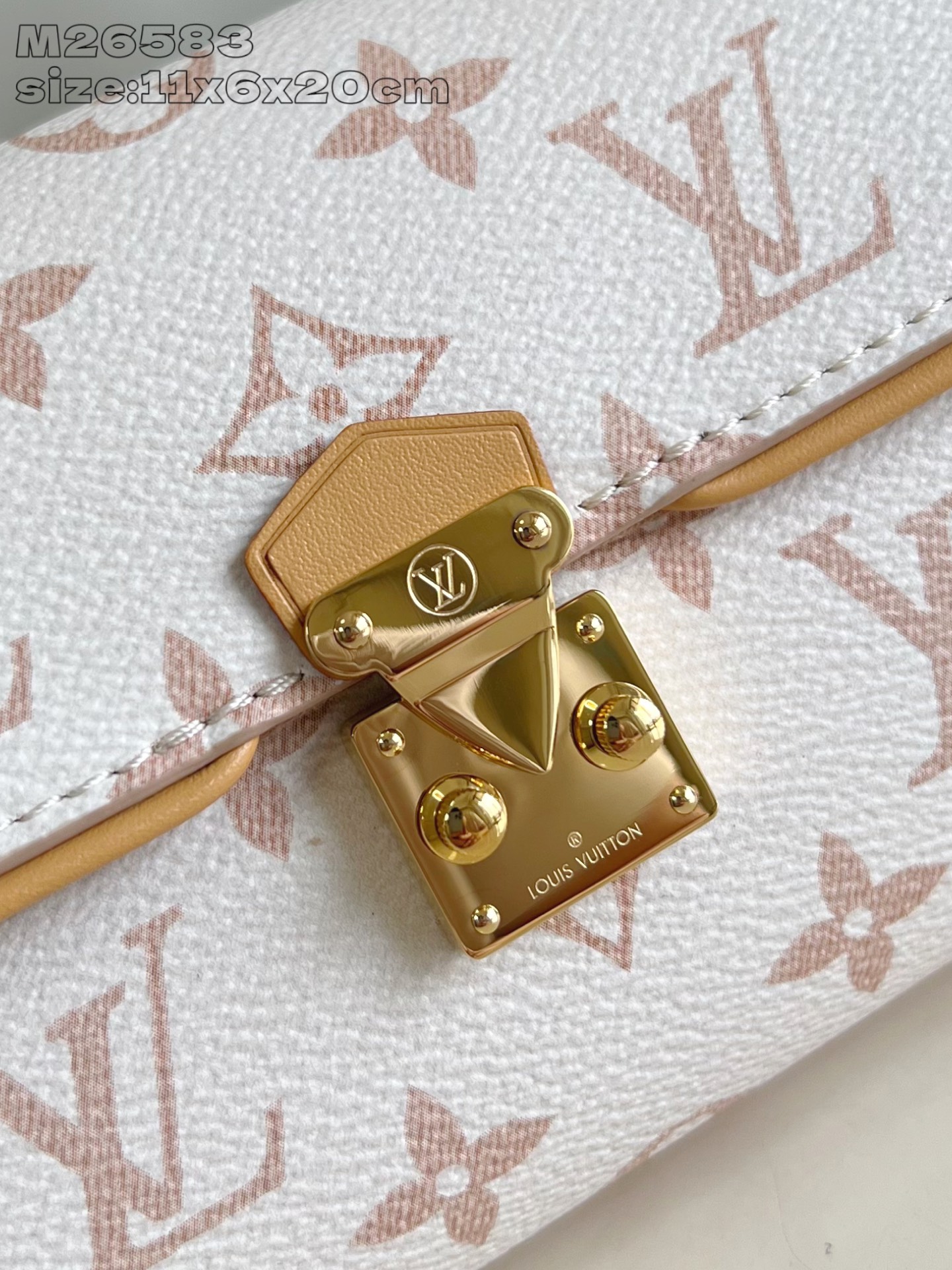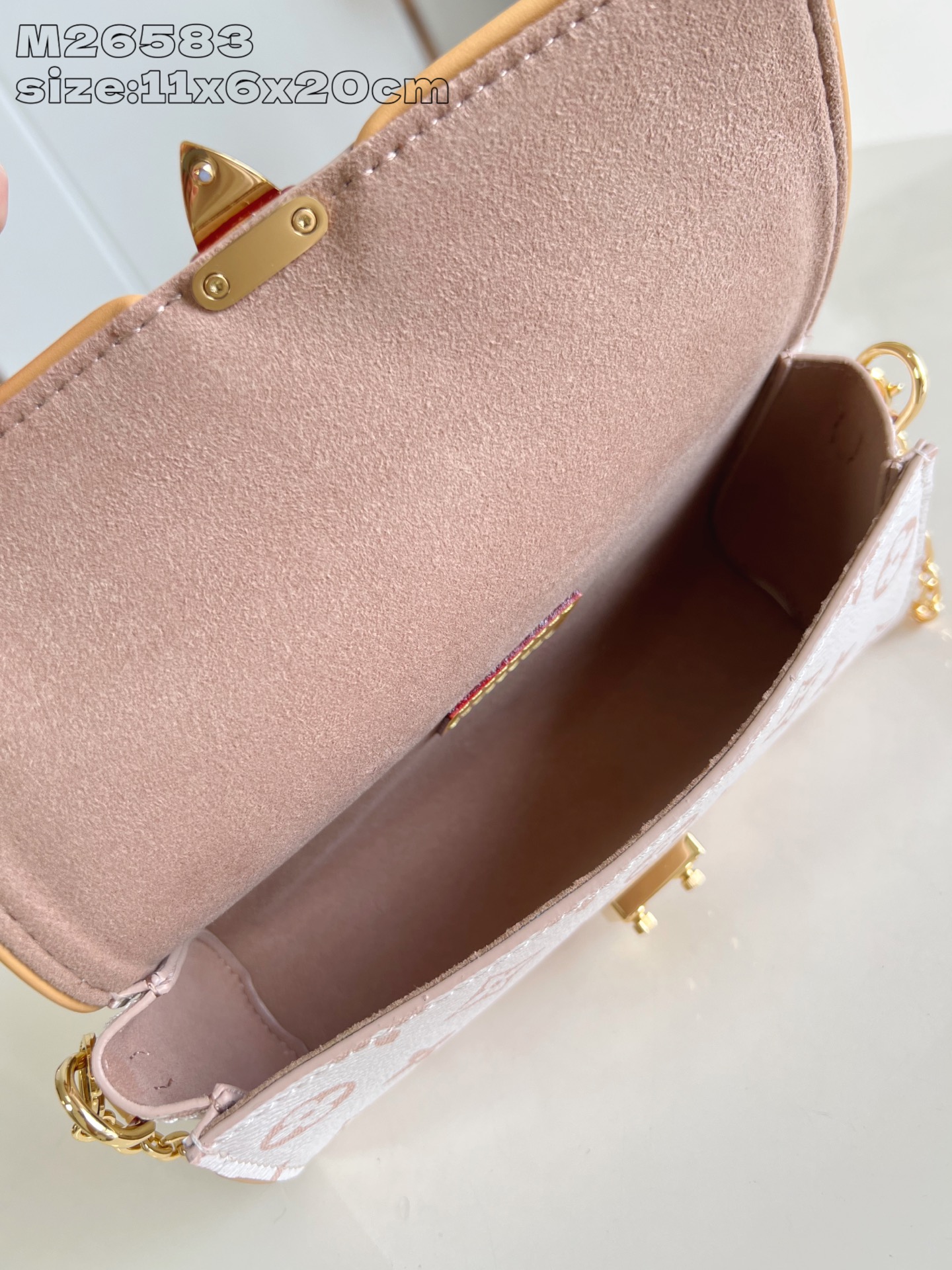 【顶级原单 M26583白花 】本款 Pochette Camille 手袋取材 Monogram Dune帆布,致意路易威登 2000 春夏时装秀问世的原版设计。S-Lock 锁扣、链条处 LV Circle 标识与撞色 VVN 皮革饰边演绎品牌经典元素。灵活易搭的构型适宜斜挎、肩背或手提。11 x 6 x 20.5 厘米 (高 x 宽 x 长度)