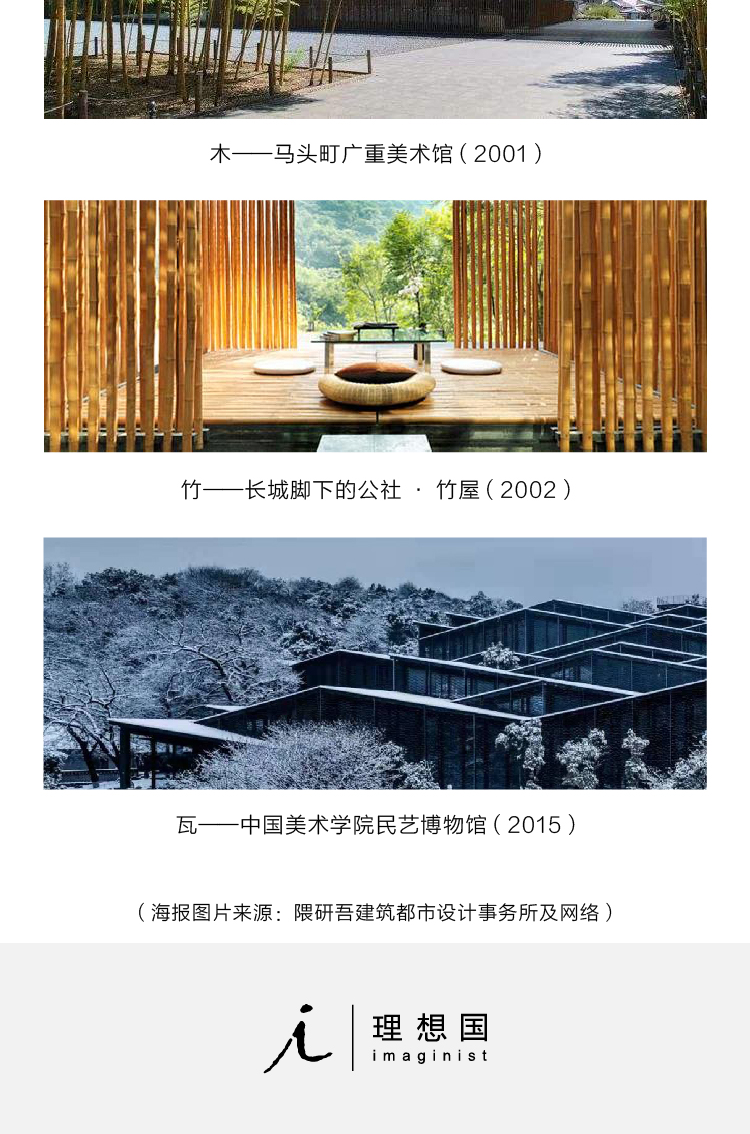 ▲ 石木竹等自然材料、木结构建筑等东方色彩令隈研吾与中国有着天然的亲近感,他在中国亦因竹屋、瑜舍、三里屯SOHO等地标性建筑享有盛誉。阅读隈研吾,探寻中国本土建筑发展的另一种可能。