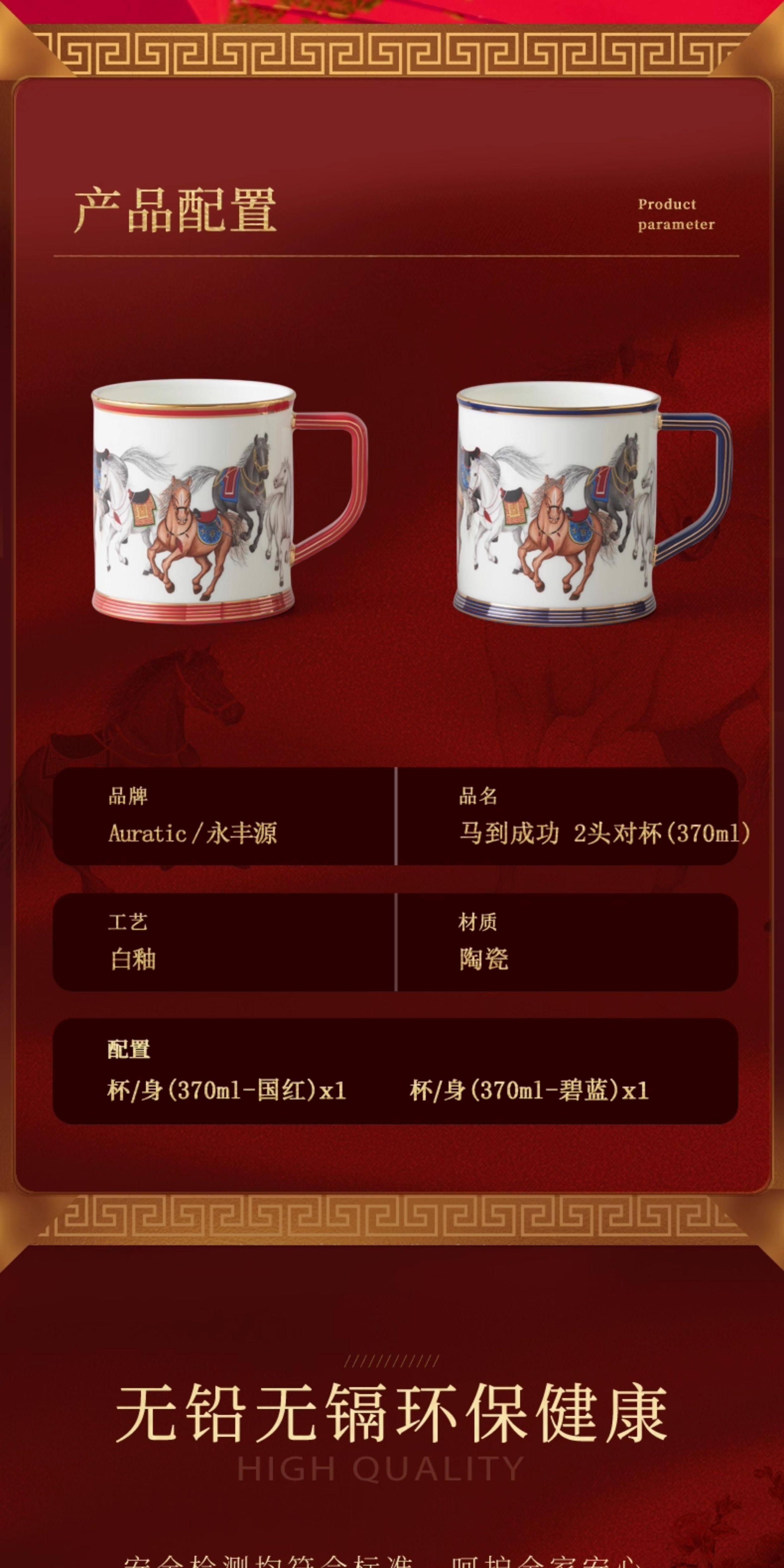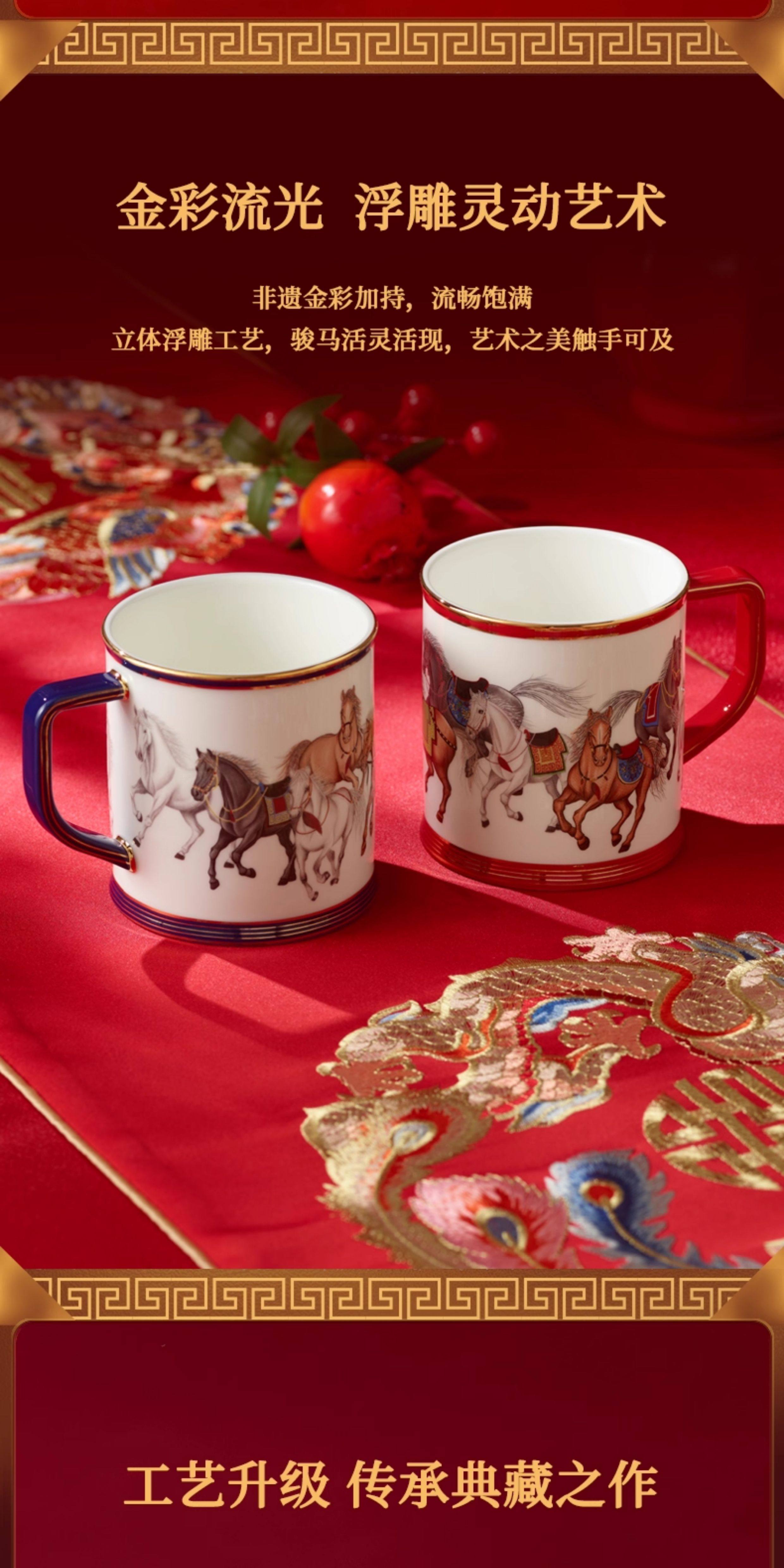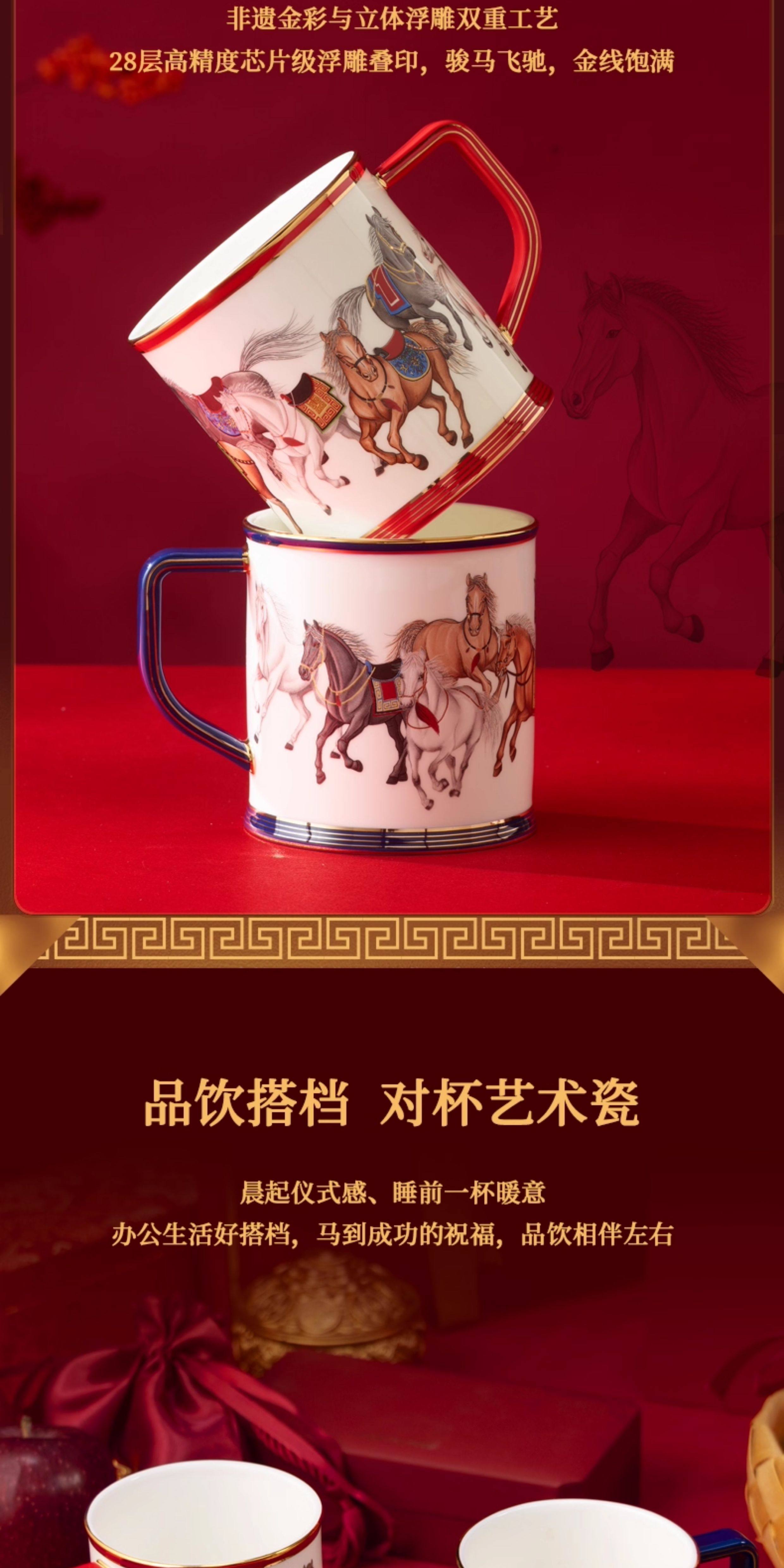 【新年礼】国瓷永丰源马到成功2头对杯(370ml)陶瓷马克杯礼物 瓷器产品不支持七天无理由