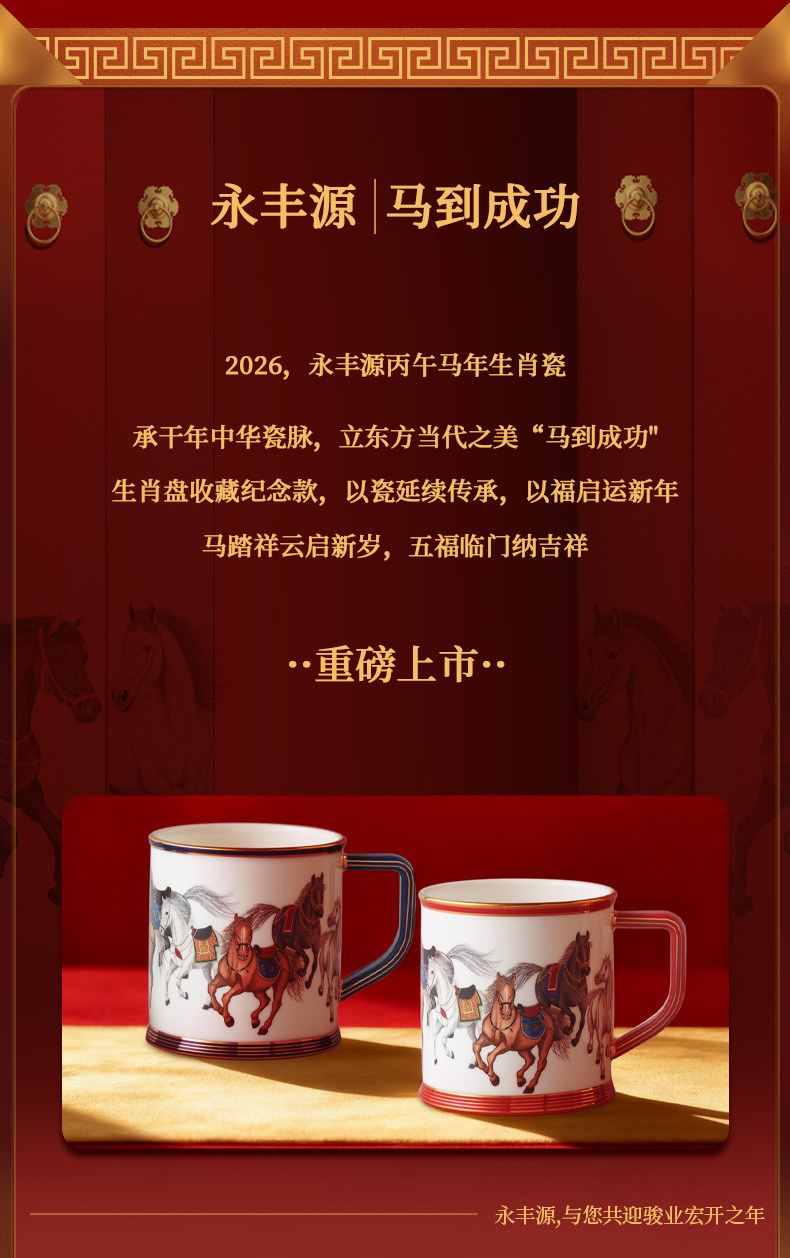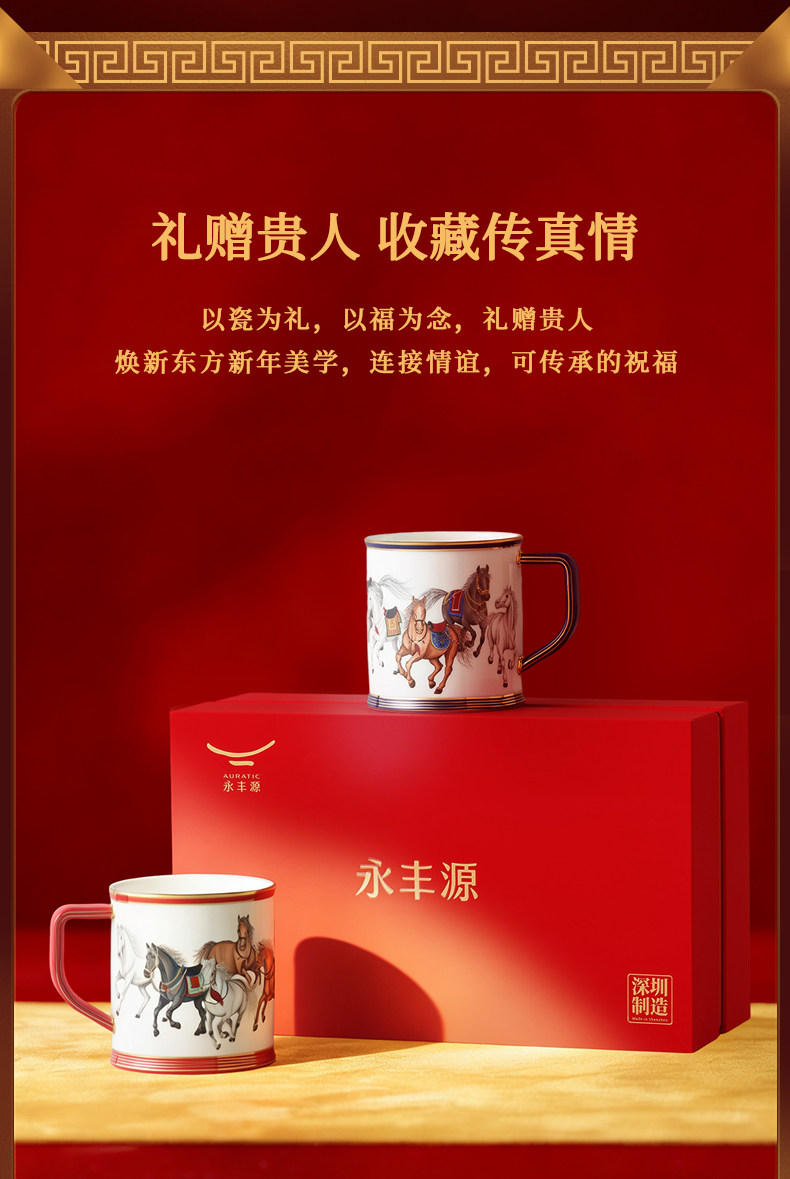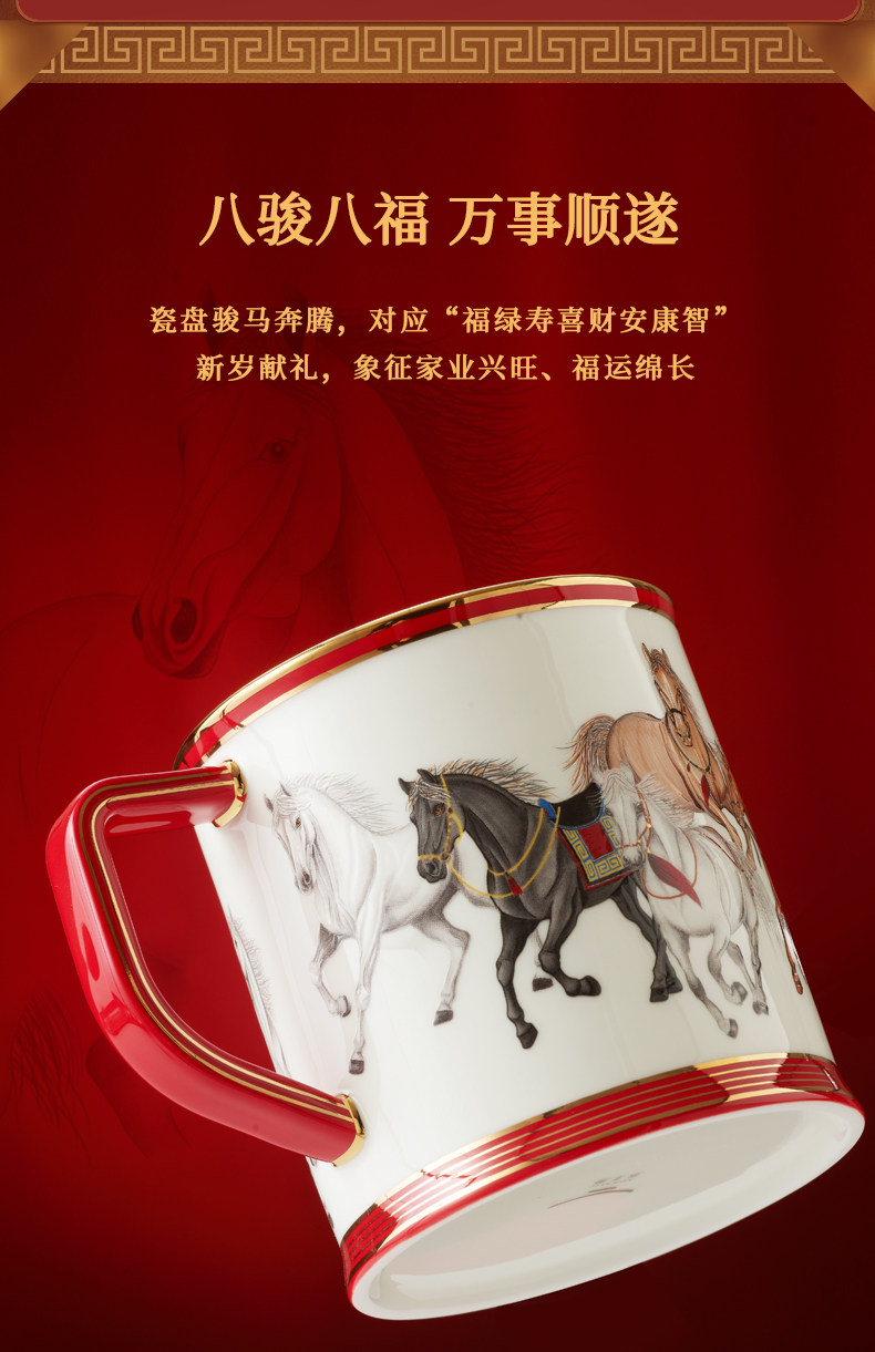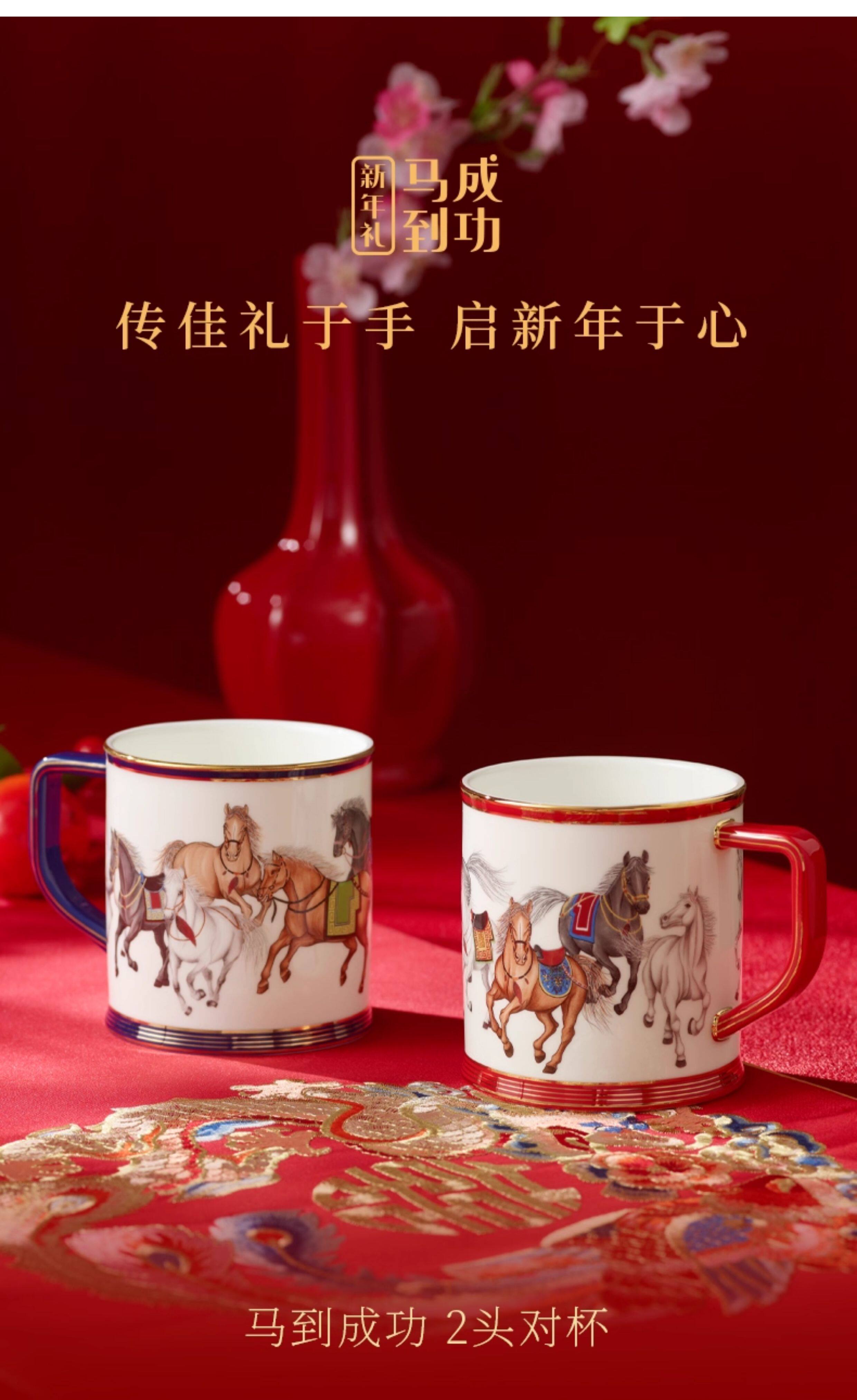 【新年礼】国瓷永丰源马到成功2头对杯(370ml)陶瓷马克杯礼物 瓷器产品不支持七天无理由