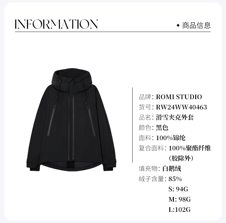 ROMI STUDIO“御雪之道”白鹅绒运动户外夹克连帽羽绒服RW24WW40463