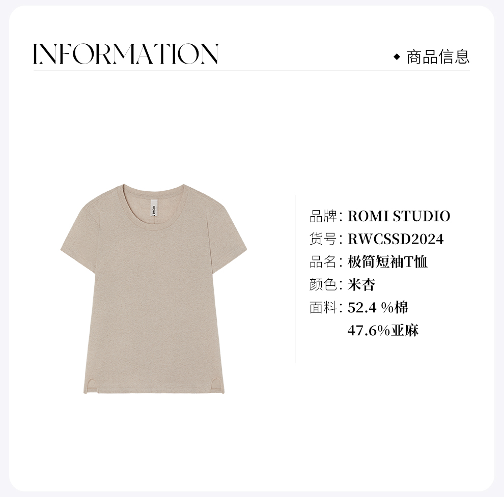 ROMI STUDIO进口亚麻棉混纺环保原色花纱圆领短袖T恤 RWCSSD2024【发货时效25天】