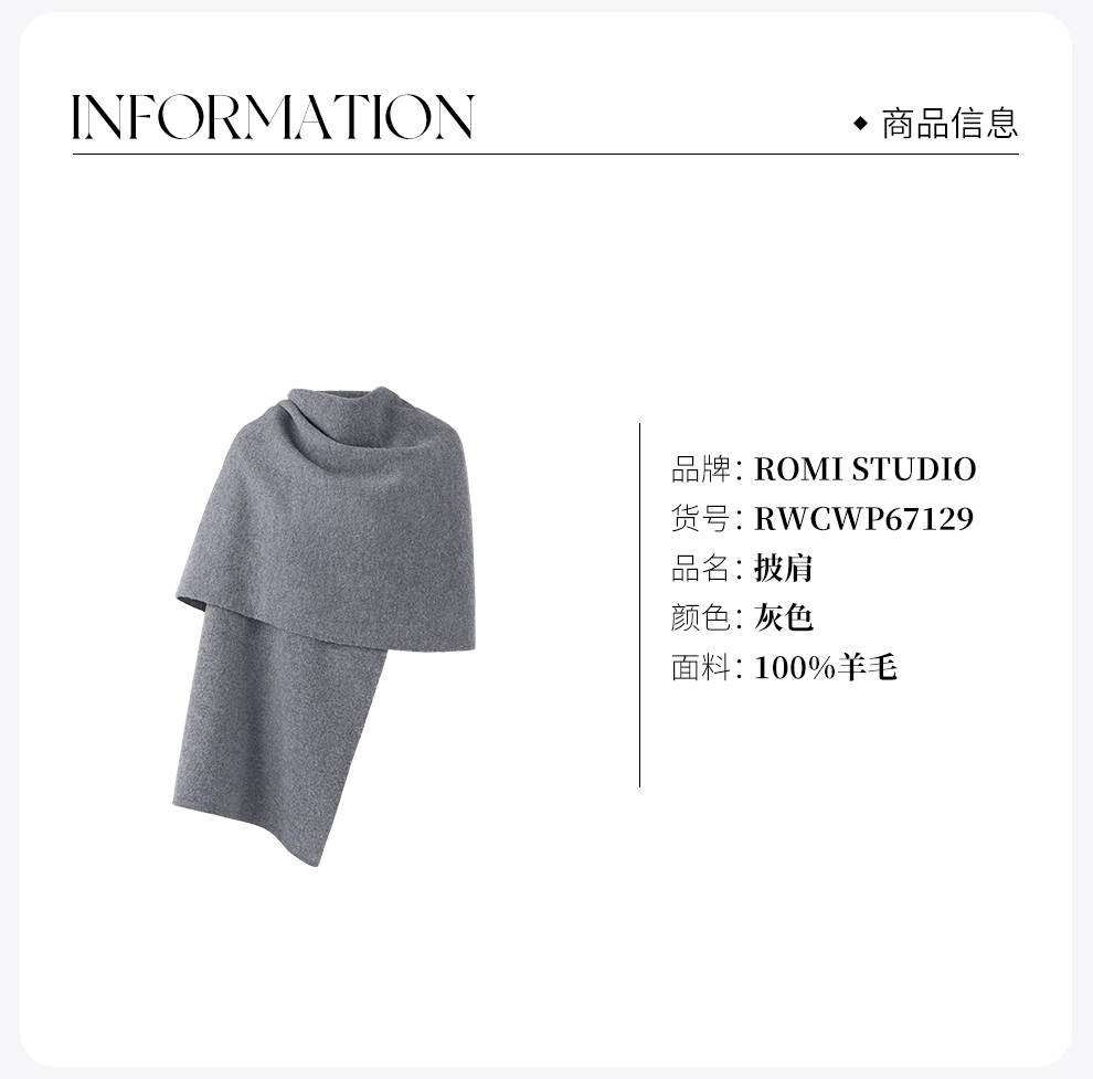 ROMI STUDIO“缩绒羊毛”绒面云感软糯一体裁剪围脖围巾 RWCWP67129