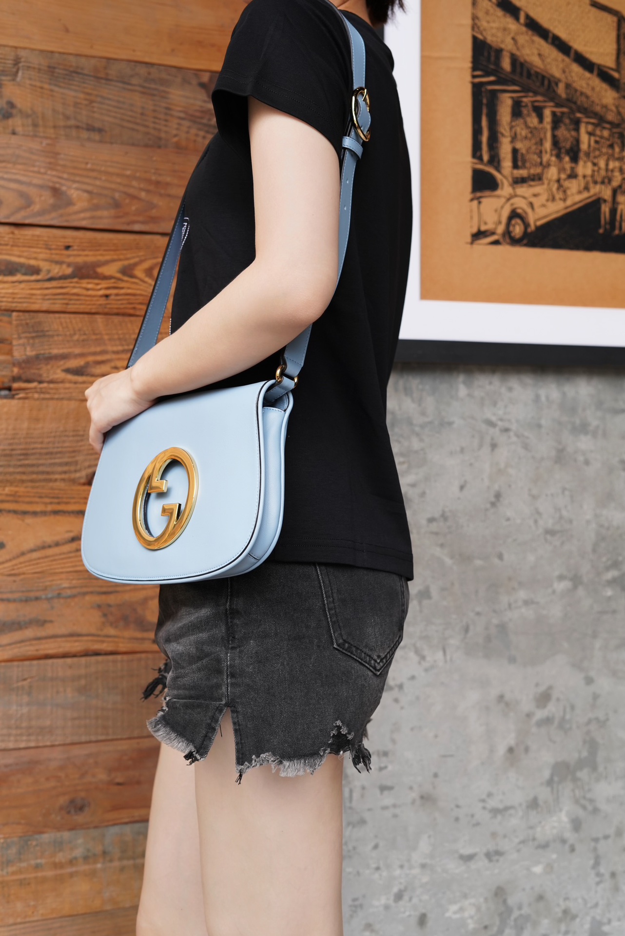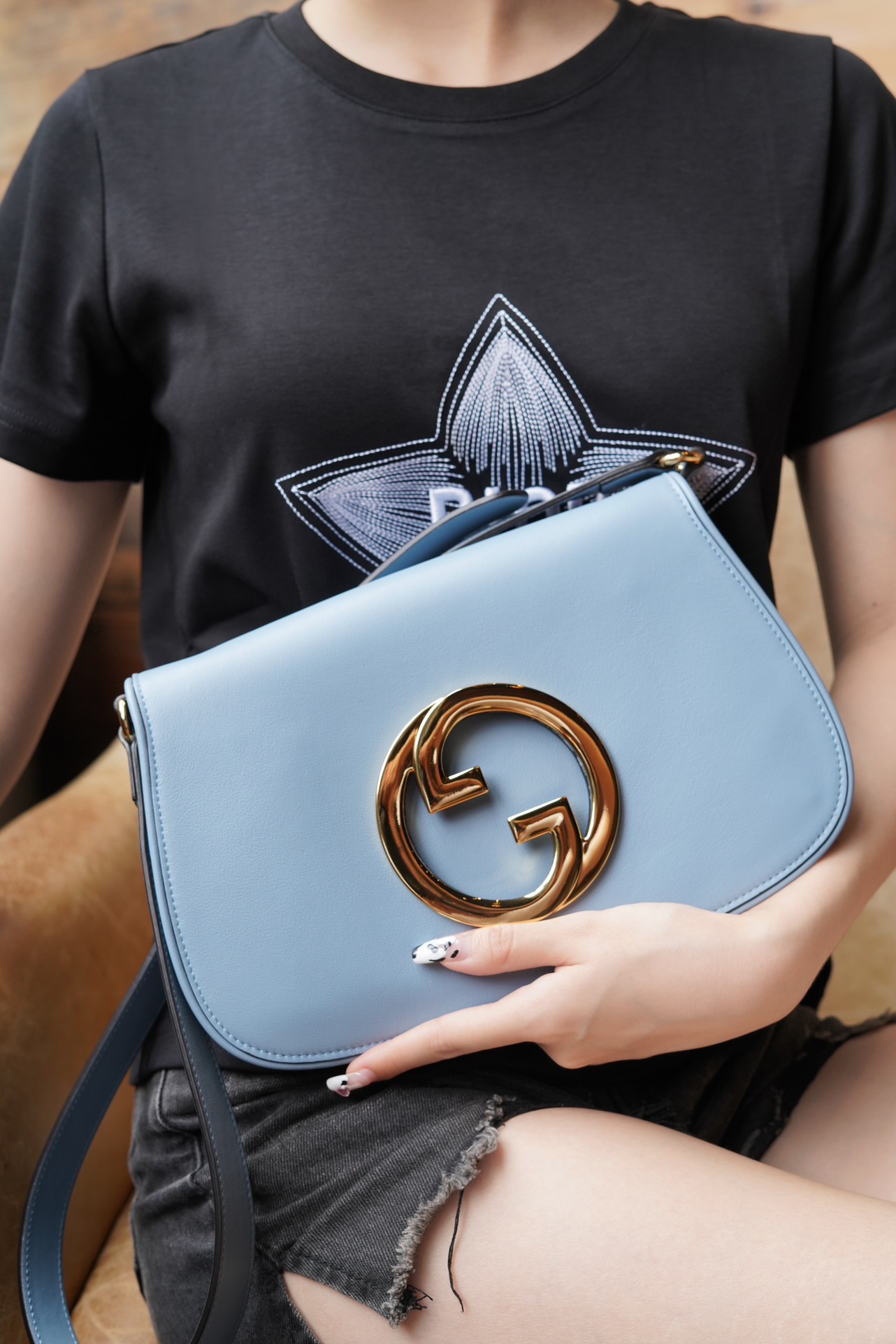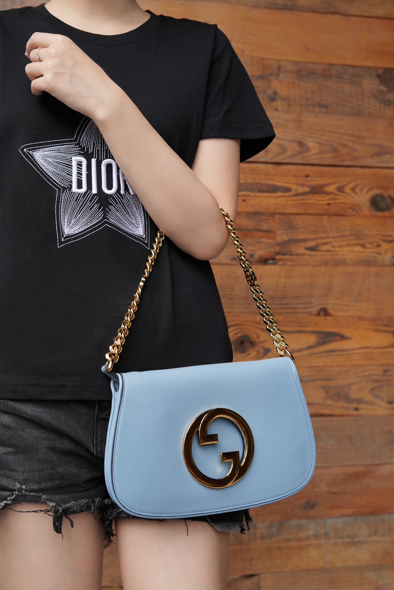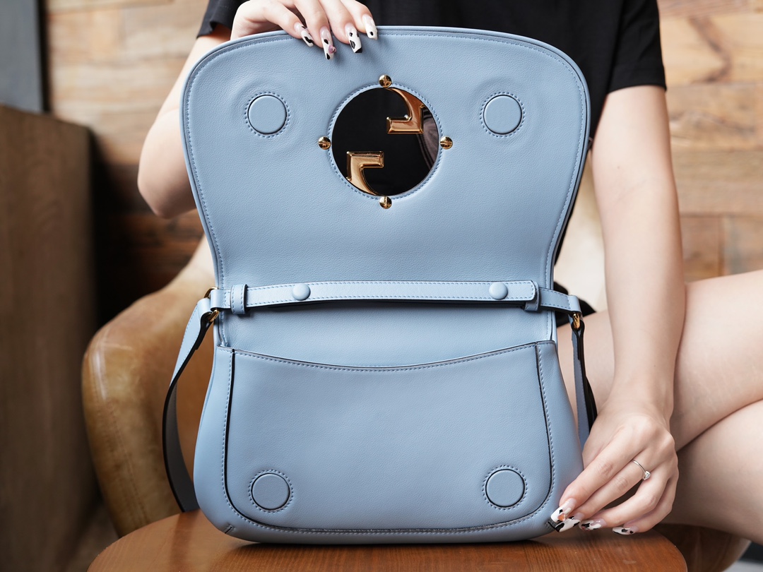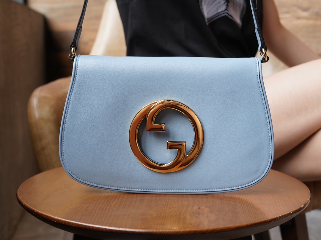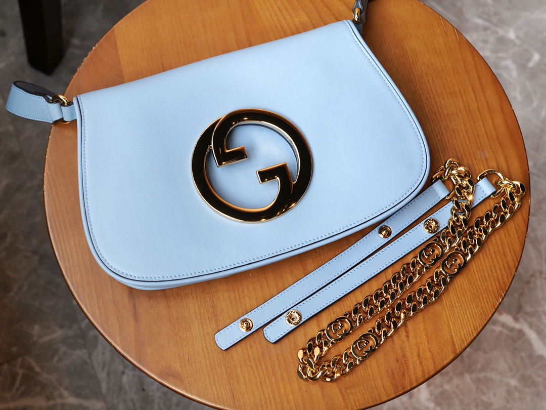 复古元素邂逅典藏细节,致敬时装秀中弥漫的魅力风尚。这款肩背包以浅蓝色皮革搭配精致的链带设计,流露经典隽永的典雅气息。圆形结构以焕新风格致敬该系列的不凡魅力,历史悠久的Guccio Gucci姓名首字母交织图案提升整款单品的格调感。