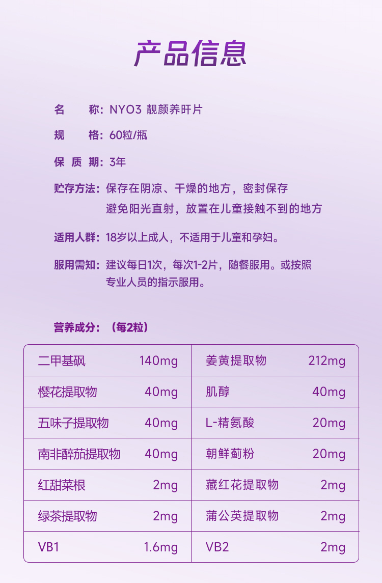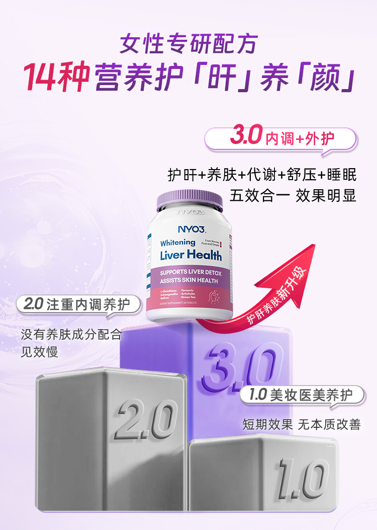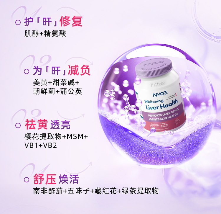 NYO3女性肝纯片姜黄熬夜去黄焕白提亮舒压非奶蓟草解郁养肝脏