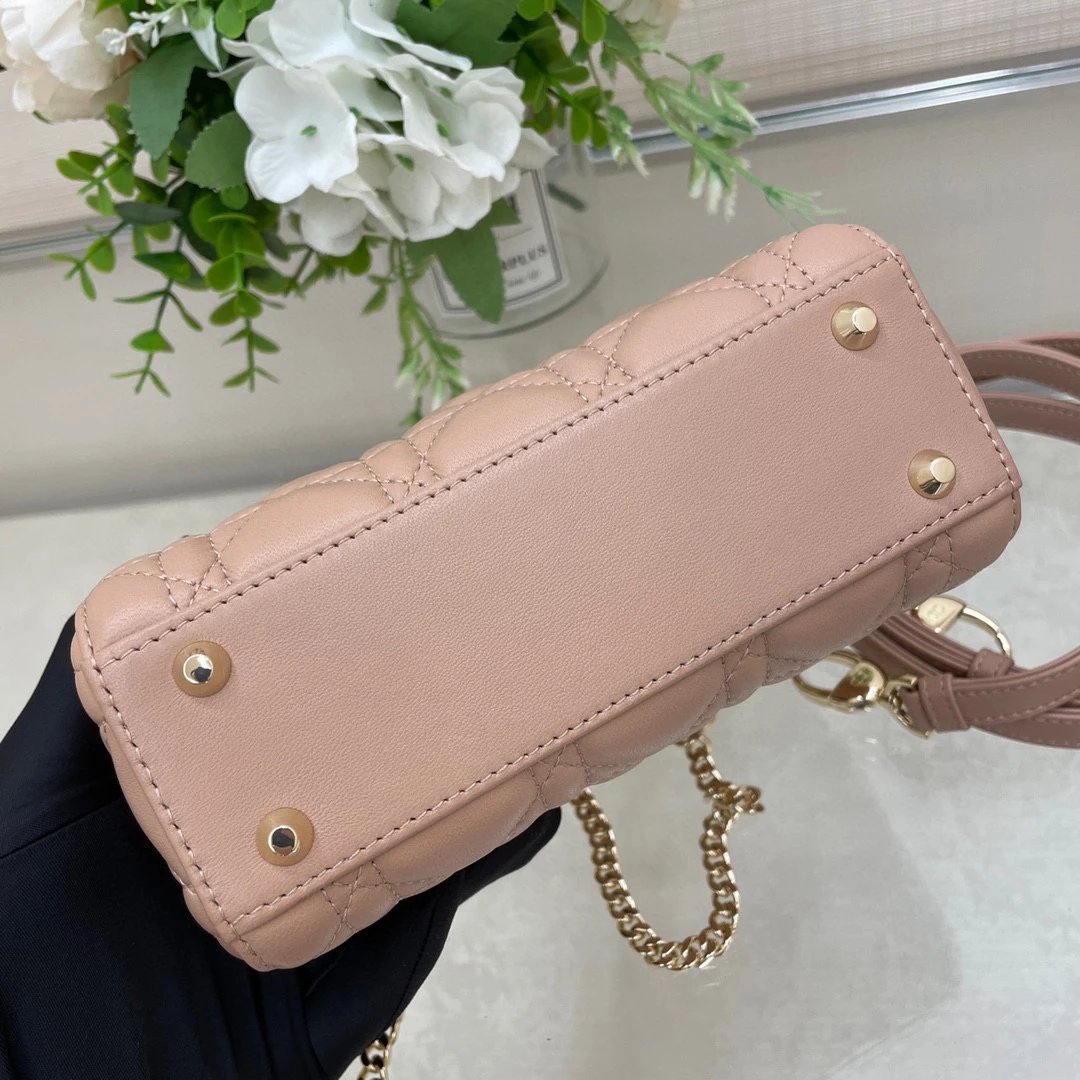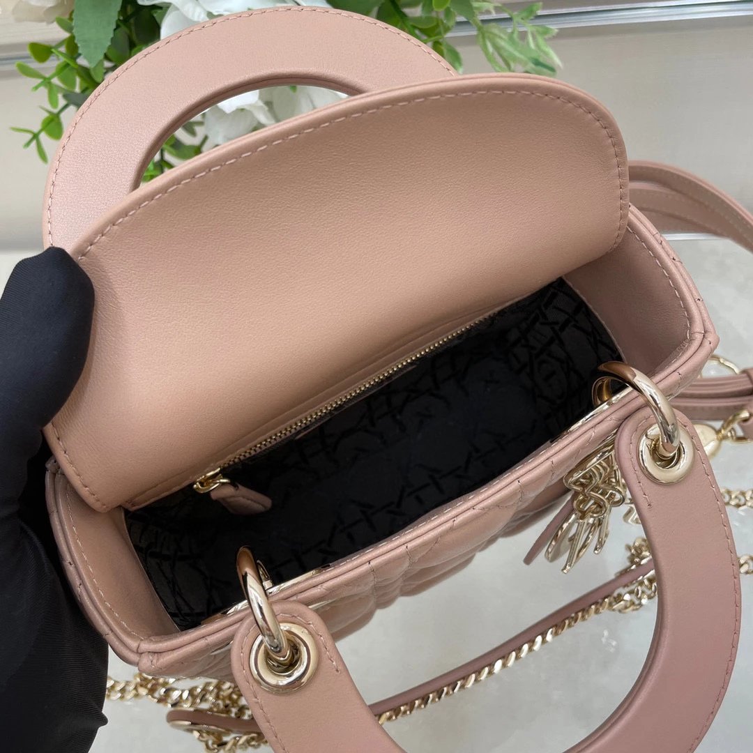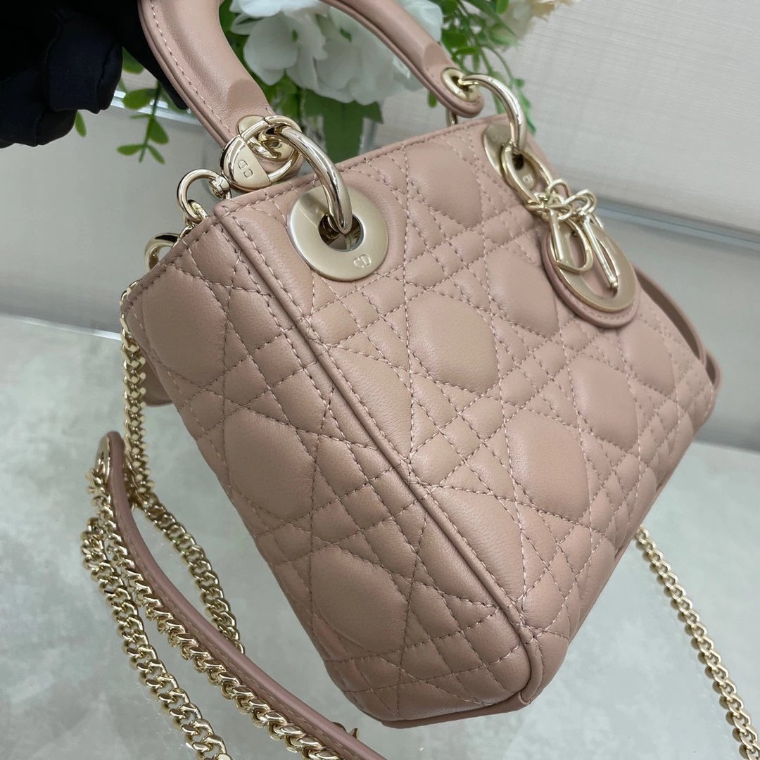 迪家|戴妃3格 豆沙粉羊皮|W ♡ Lady Mini ③格 豆沙粉 D1or lady mini 菱格纹戴妃包✨ lady D1or 的所有配色都太美啦 三格翻盖 还配齐两条肩带可以更换使用 ~ ? 尺寸 :17x15x7cm