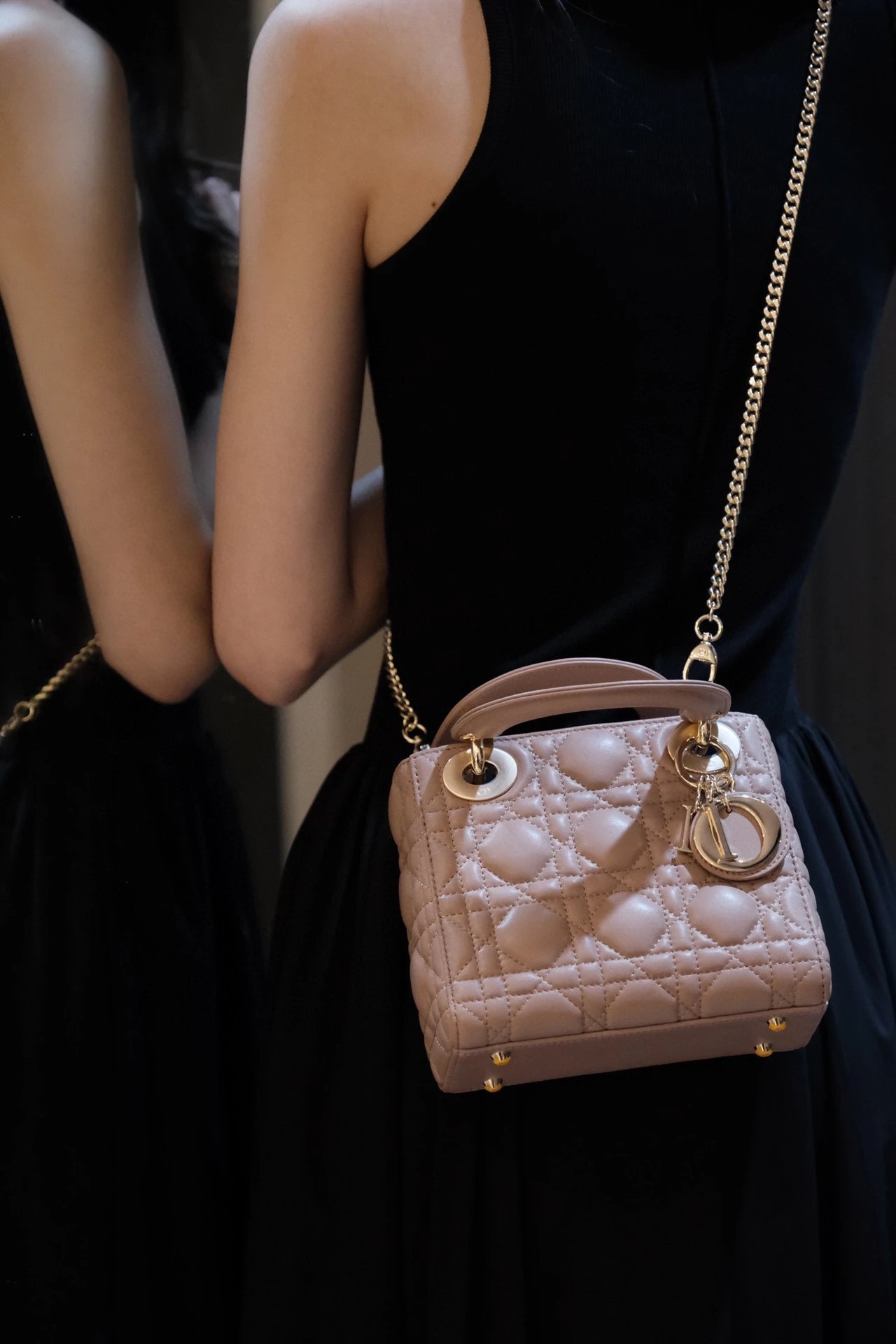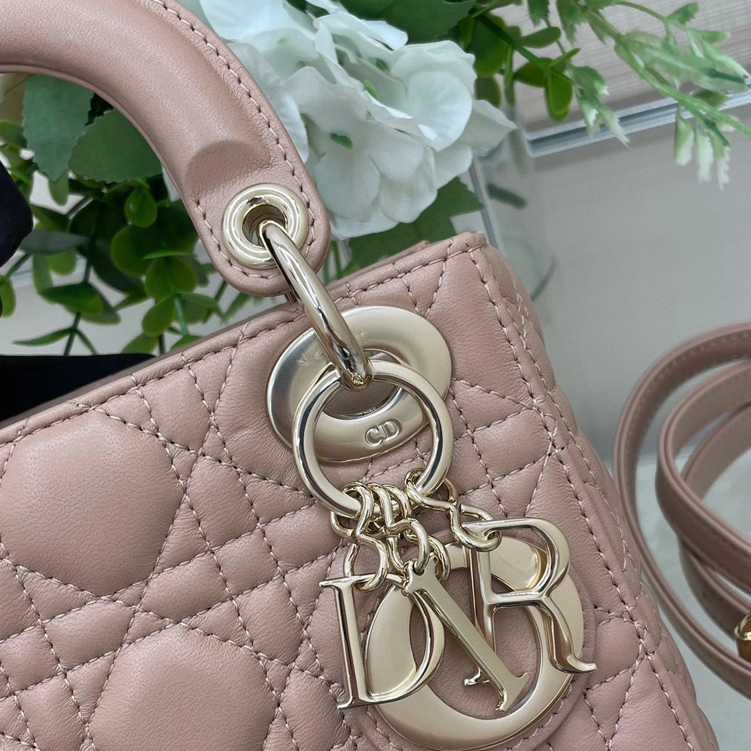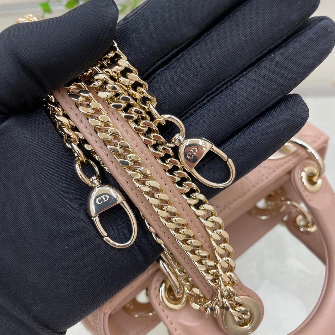 迪家|戴妃3格 豆沙粉羊皮|W ♡ Lady Mini ③格 豆沙粉 D1or lady mini 菱格纹戴妃包✨ lady D1or 的所有配色都太美啦 三格翻盖 还配齐两条肩带可以更换使用 ~ ? 尺寸 :17x15x7cm
