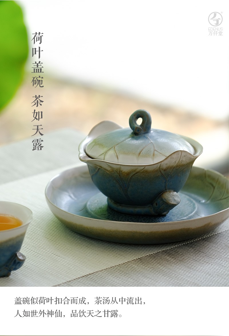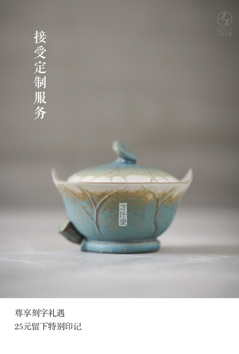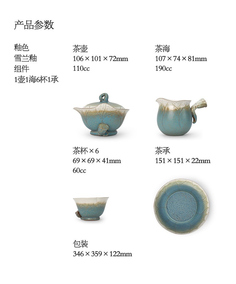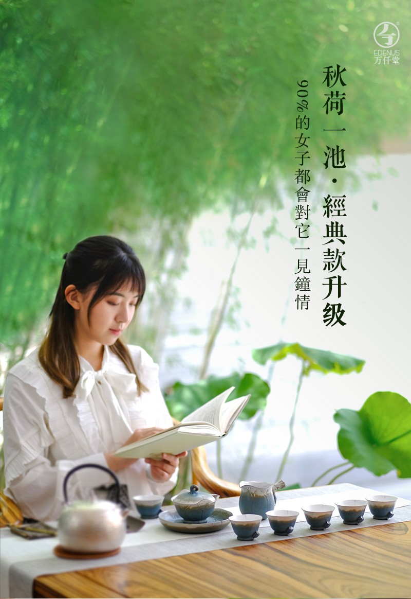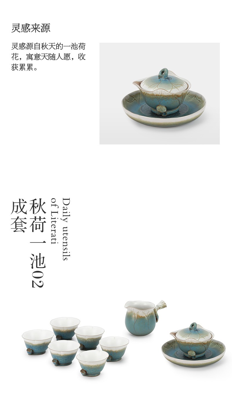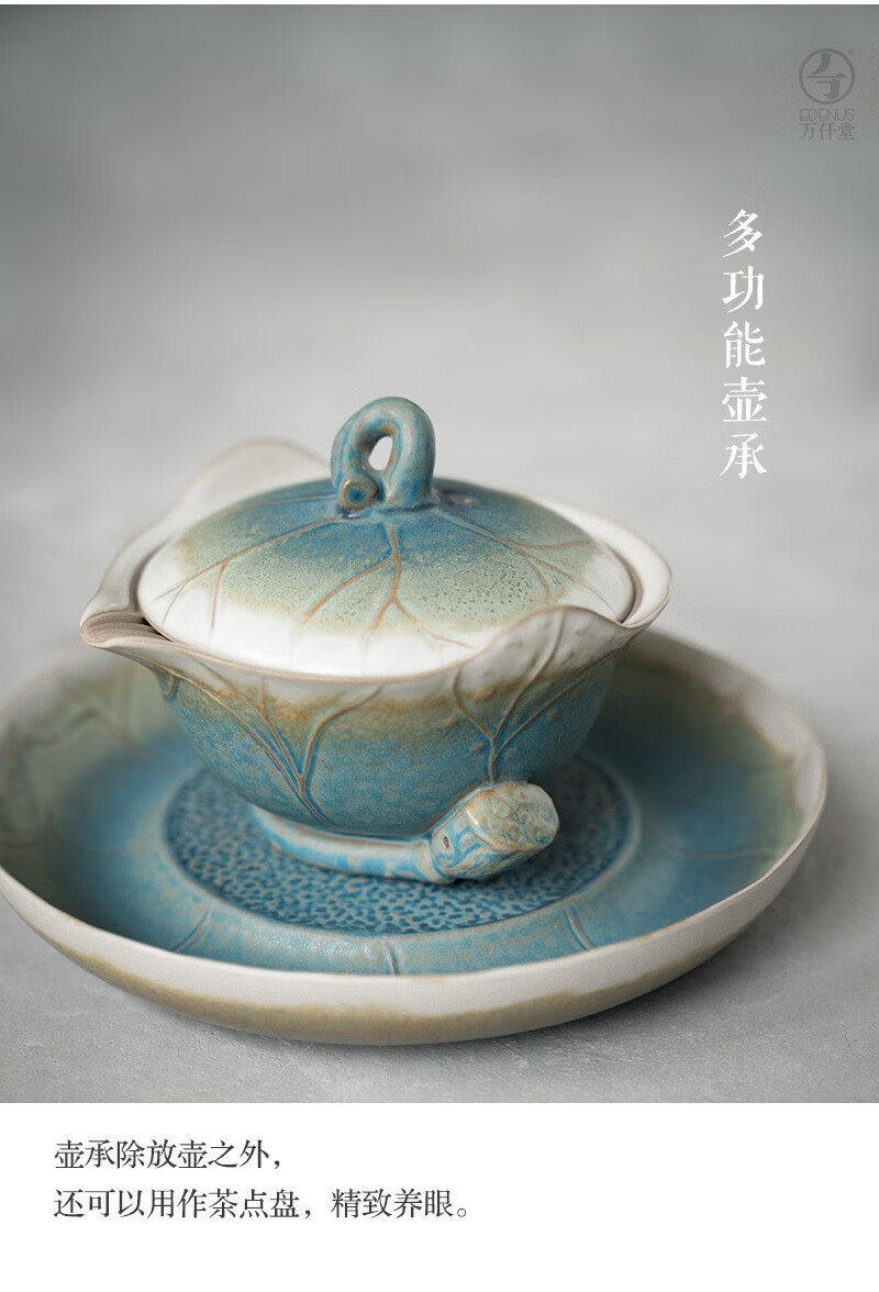 万仟堂 茶具套装家用 客厅送礼茶具 陶瓷功夫 高档茶具整套 茶具茶盘秋荷 圆形功夫茶盘 秋荷一池02 雪兰釉 1壶1海1承6杯(不含茶盘)