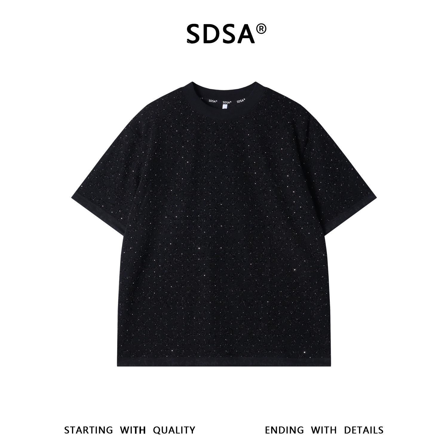 T2619夏季新款时尚个性美式纯色重工烫钻水杯圆领短袖T恤百搭潮流上衣
