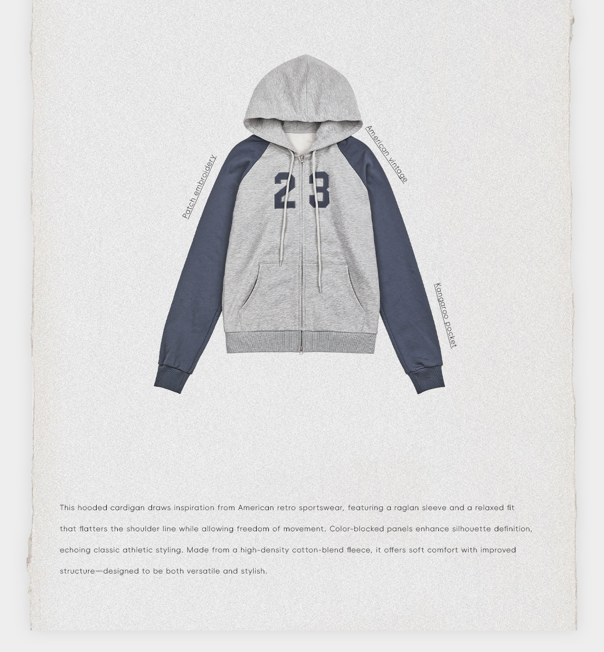 ROMI STUDIO“美式复古”字母印花拼色插肩袖连帽卫衣 RWDSS62123