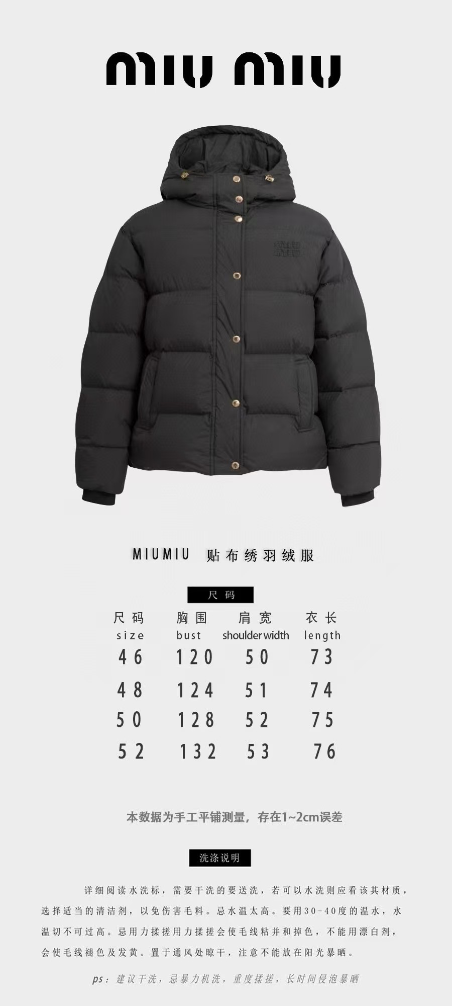 Miumi*u…❤️原版级❤️贴布绣羽绒服