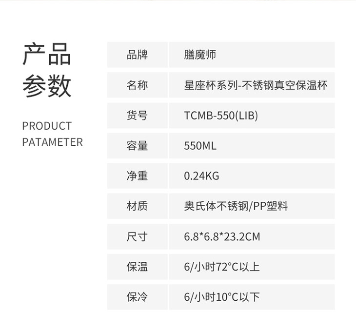 【一般贸易】膳魔师(THERMOS)保温杯十二星座杯夜光550ML情侣水杯送礼TCMB-550车载弹盖杯