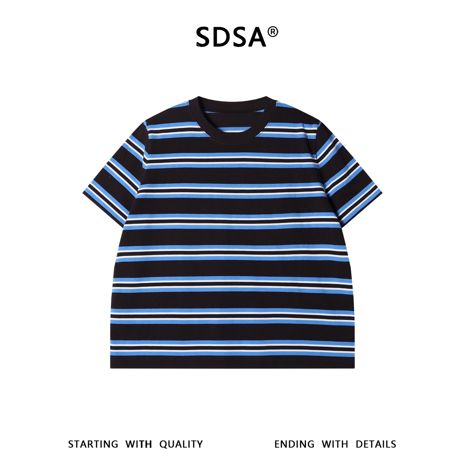 SDSA男装2026新款高贵轻奢时尚简约撞色条纹圆领短袖T恤宽松百搭