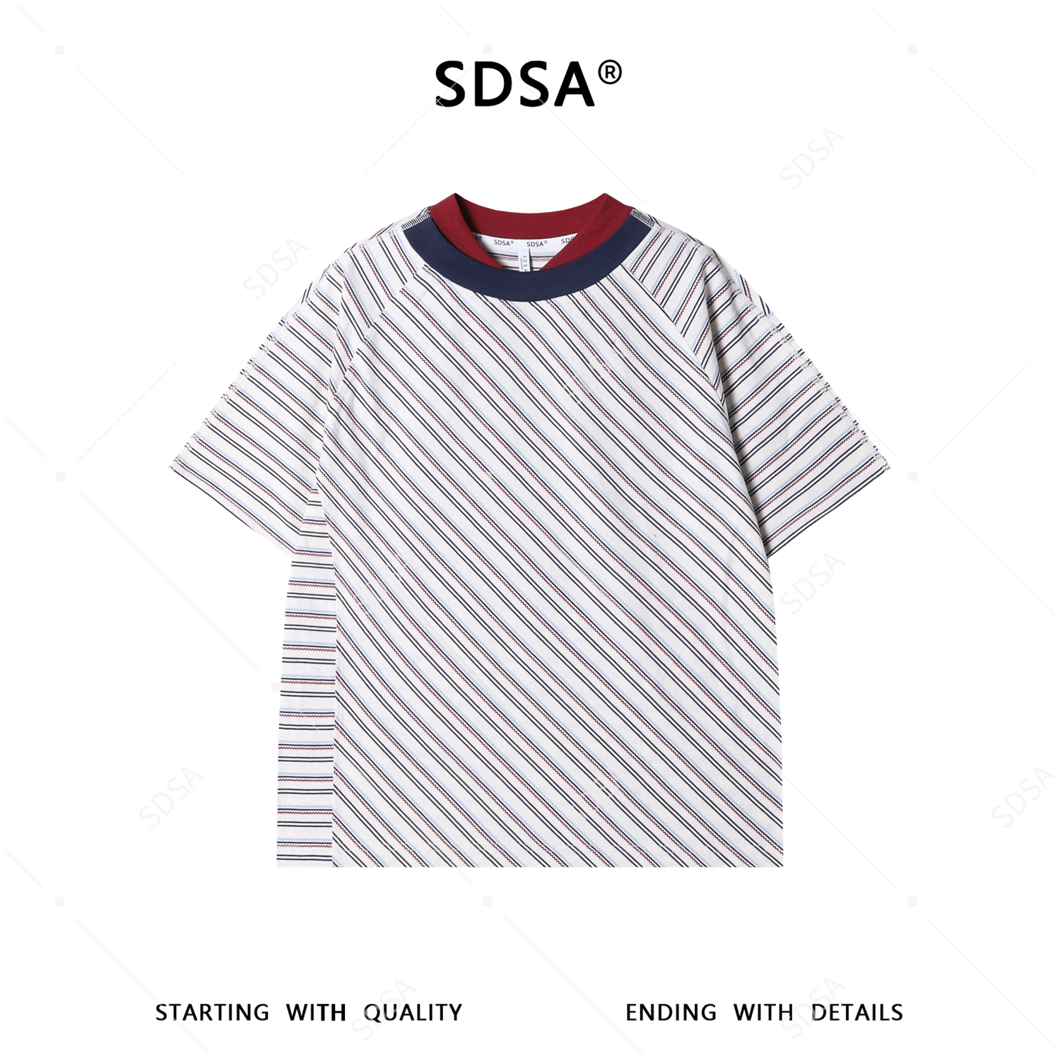 26T160SDSA男装2026新款高贵轻奢时尚撞色斜纹短袖T恤百搭领口拼接宽松