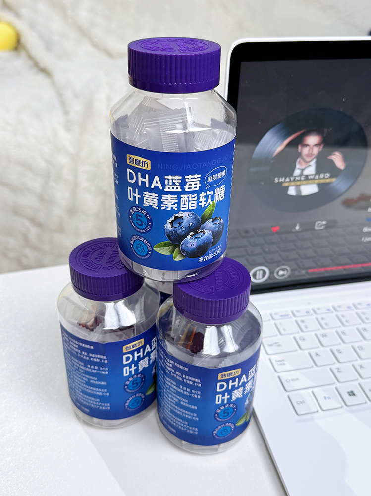 【儿童零食】甄磨坊DHA-蓝莓叶黄素酯软糖50g*4瓶*1