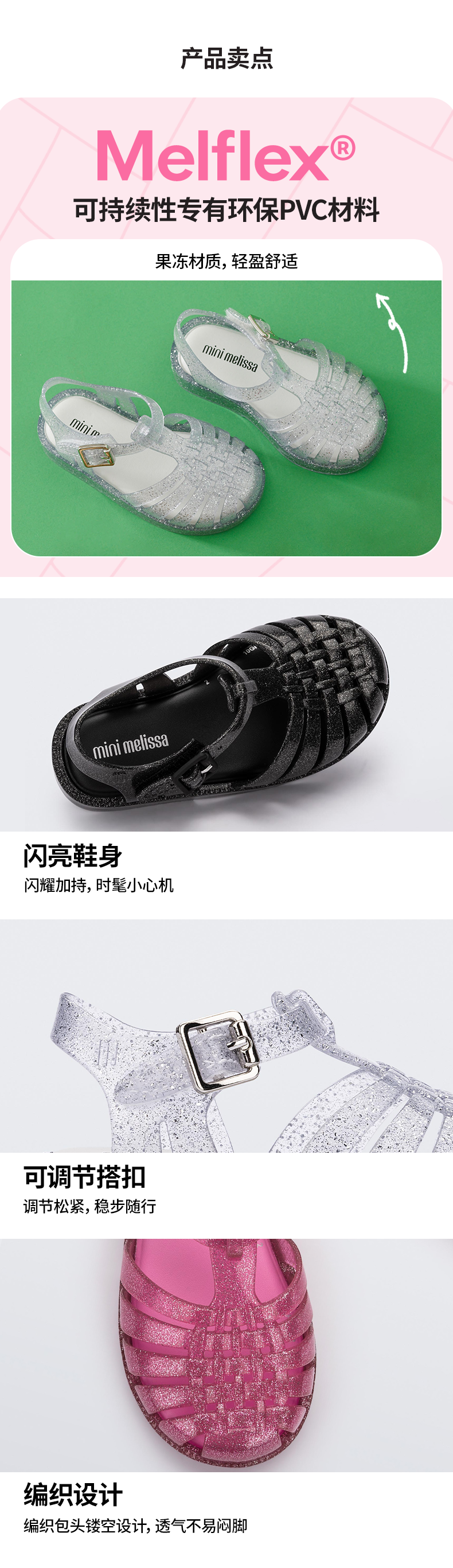 Melissa/梅丽莎 亲子系列平底小童罗马猪笼鞋儿童果冻凉鞋33522