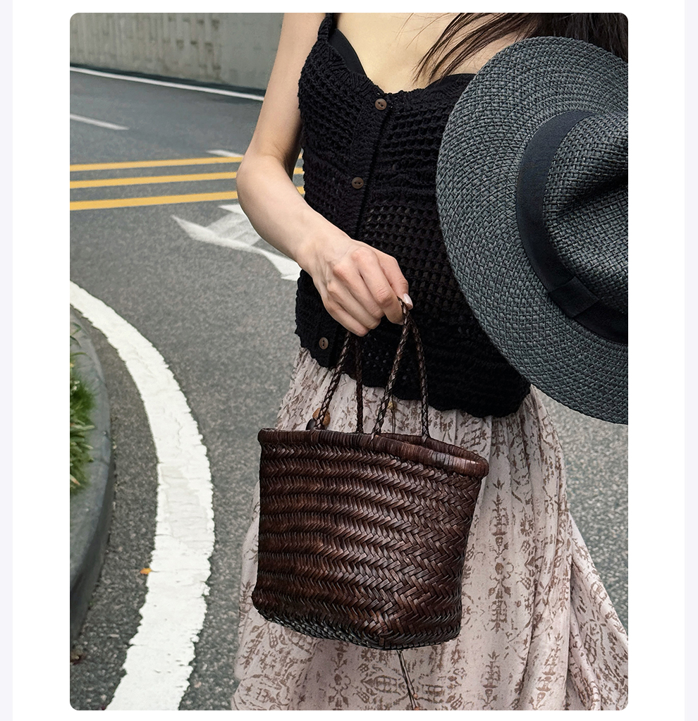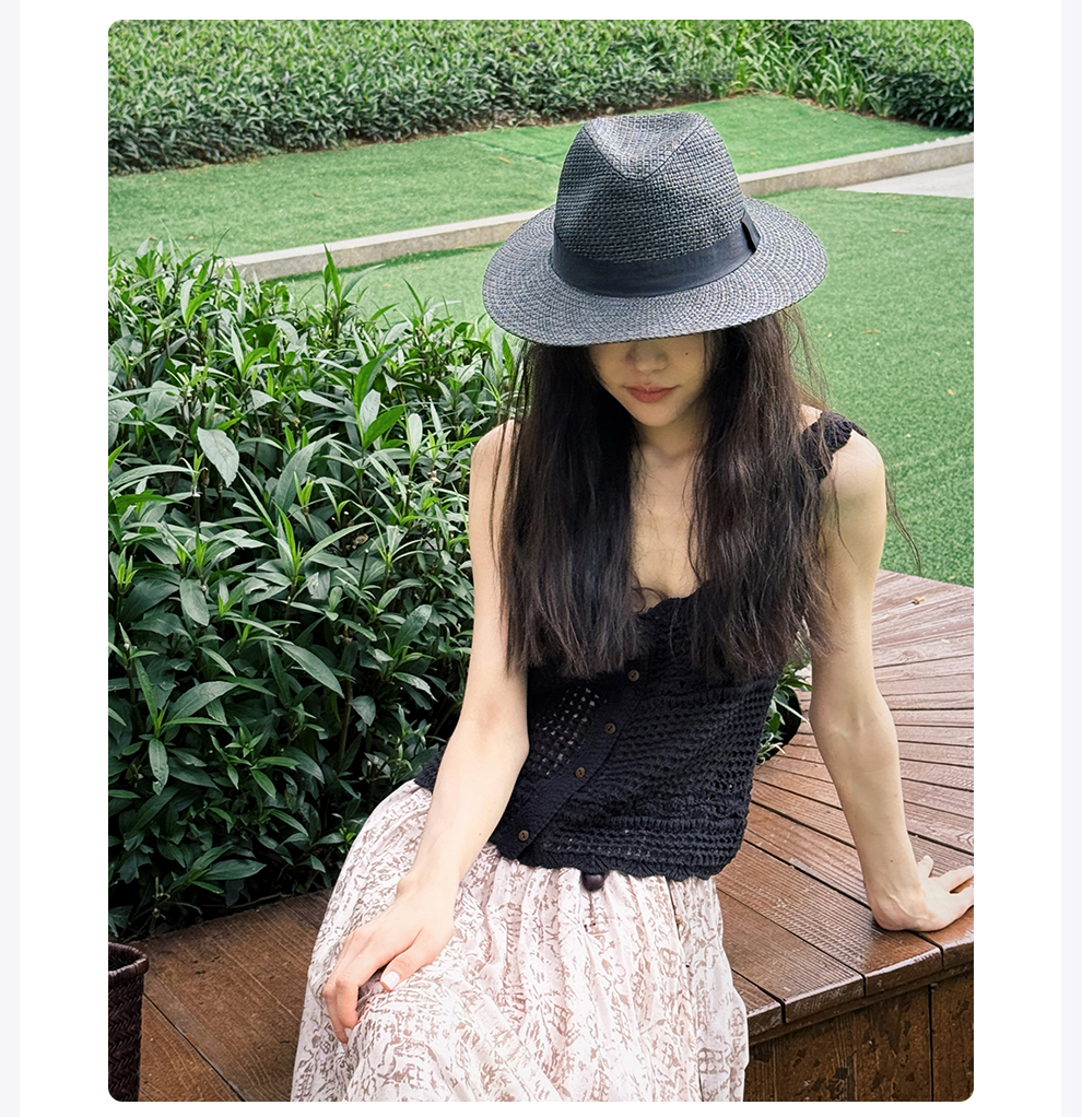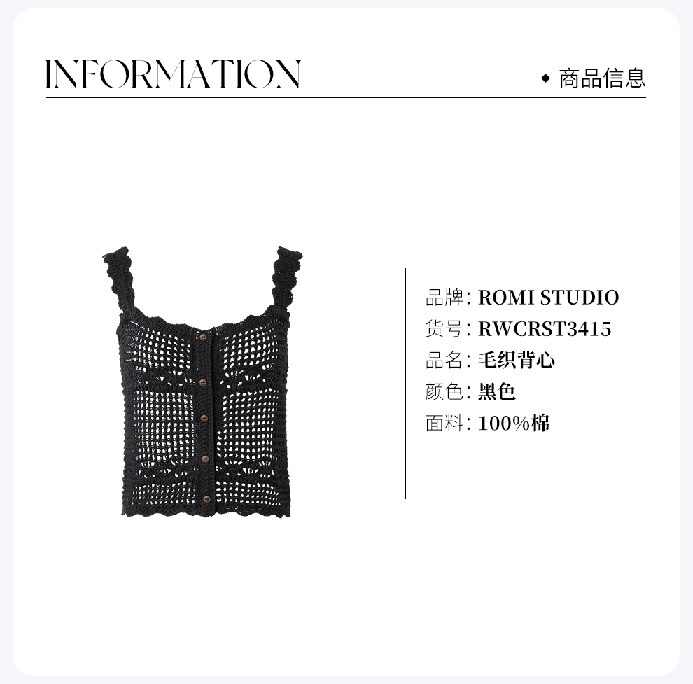 ROMI STUDIO“纵横交织”黑色全棉复古钩针编织镂空背心 RWCRSZ3441