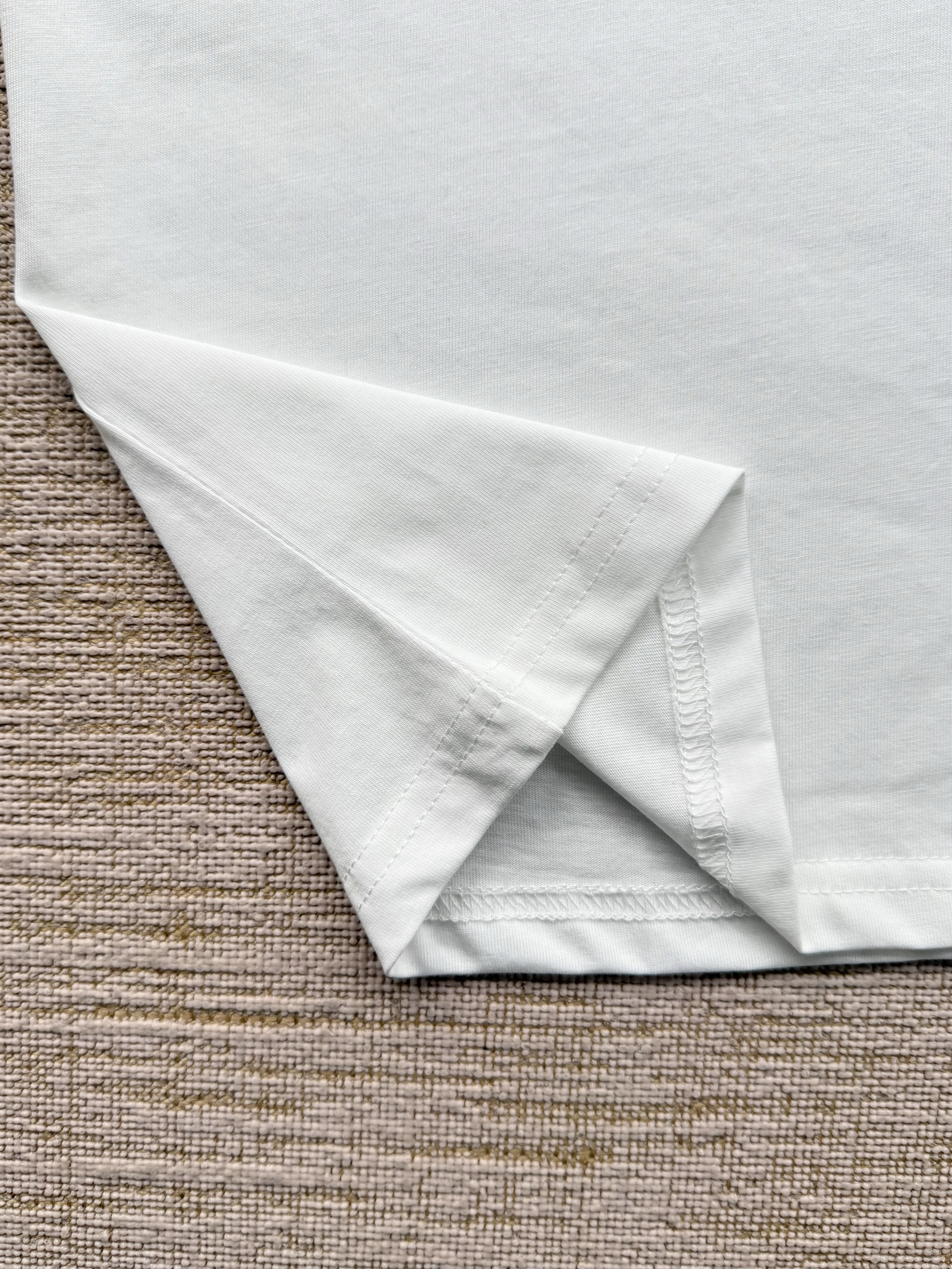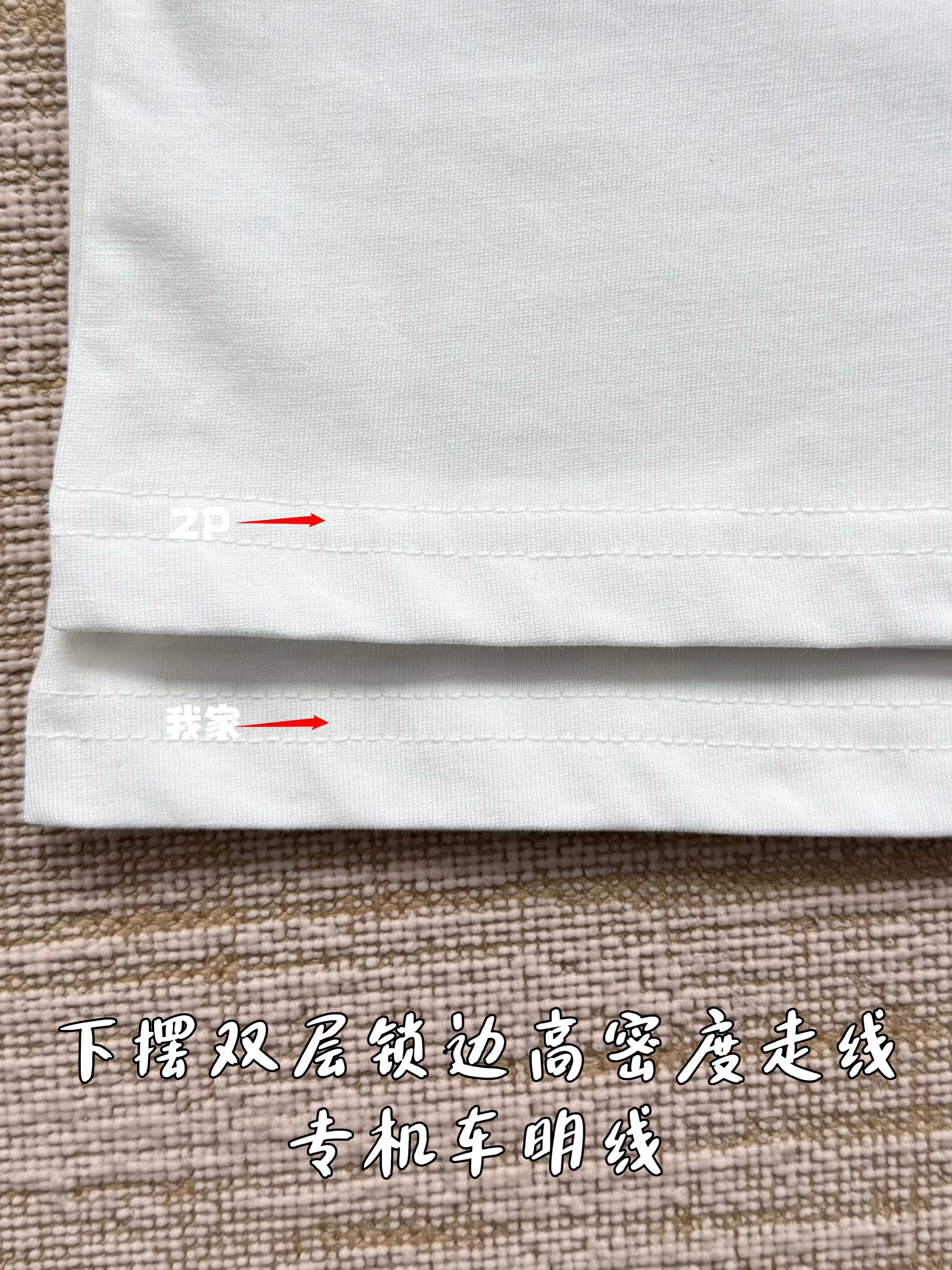 整件衣服7050购买ZP拆解打造,采用定制白色棉质平纹针织面料,做到100%全棉进口纱线,意大利制造,前后幅饰以撞色字母标识印花,定织标志性罗纹领口,超紧密度局部编织,袖口 下摆双层锁边高密度走线,