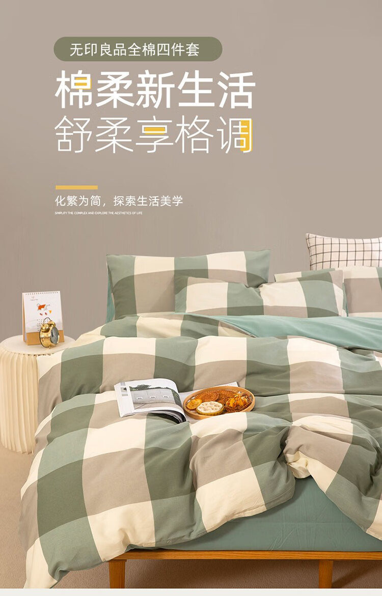 無印全棉四件套 巴黎生活 MJ-TJ22-22 绿色 200*230