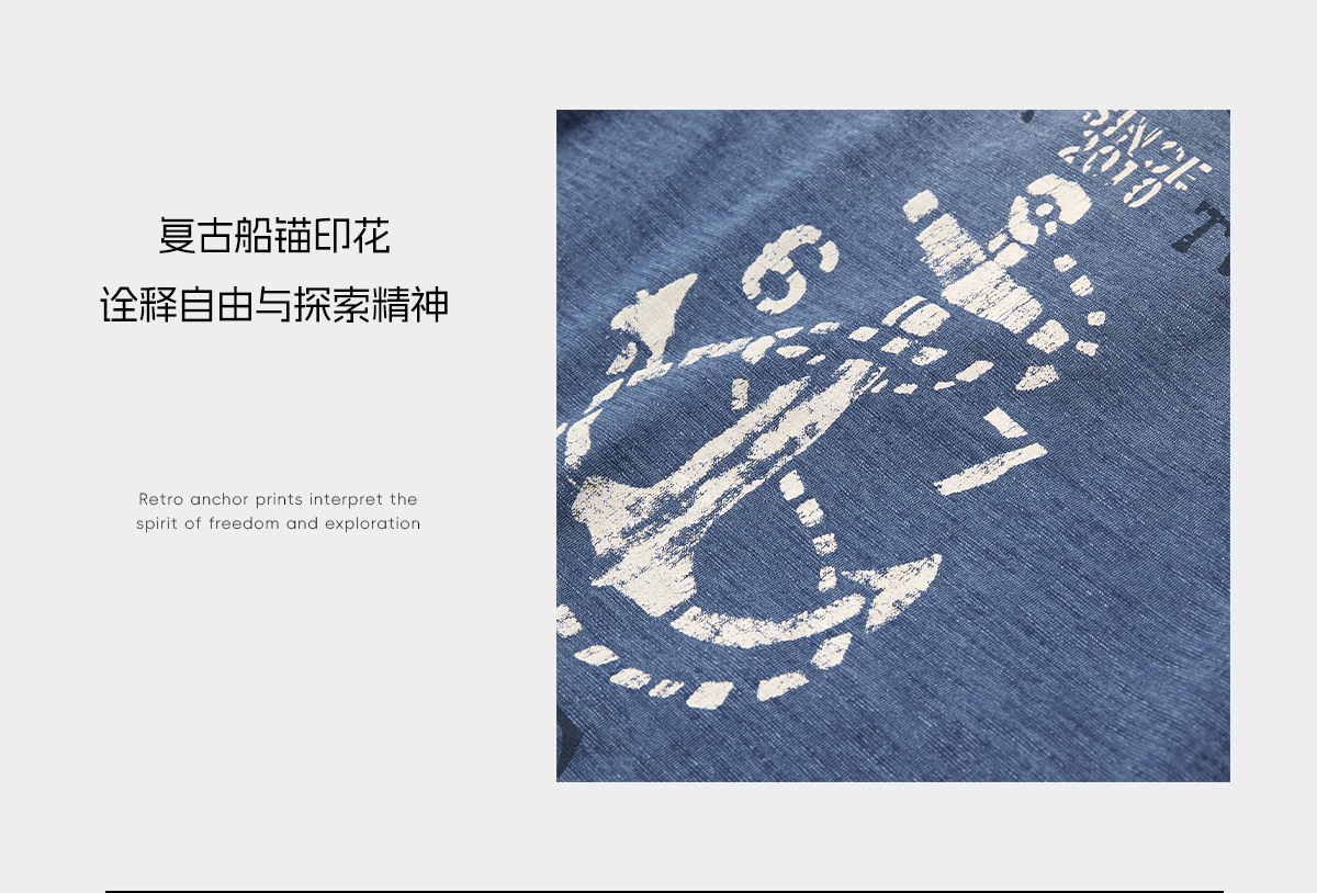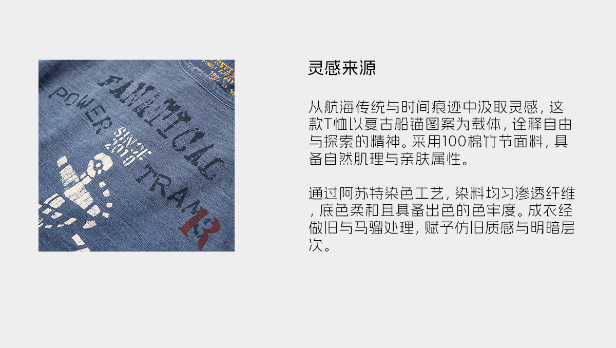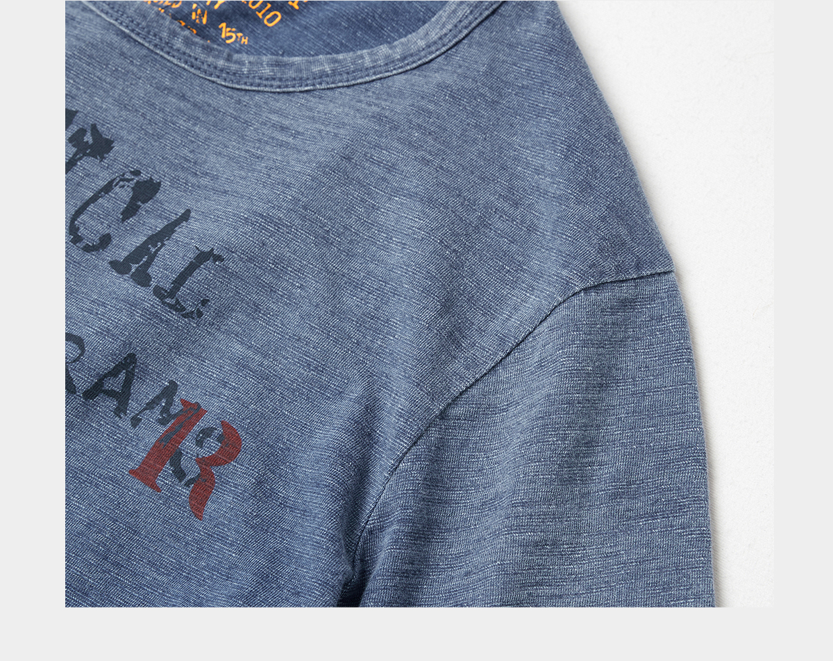 ROMI STUDIO“航海记述”特染竹节棉复古蓝印花短袖T恤RWCAST6257
