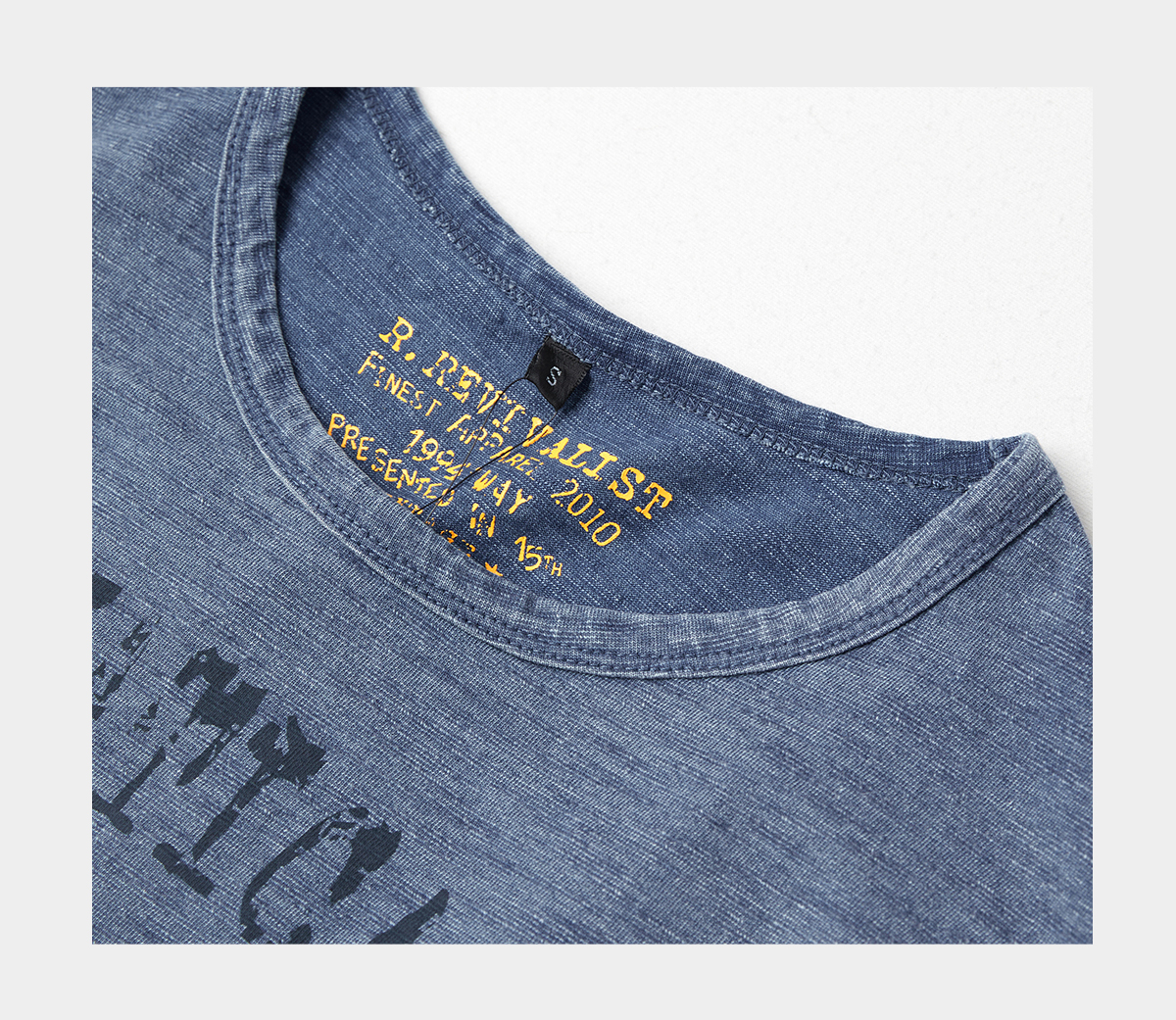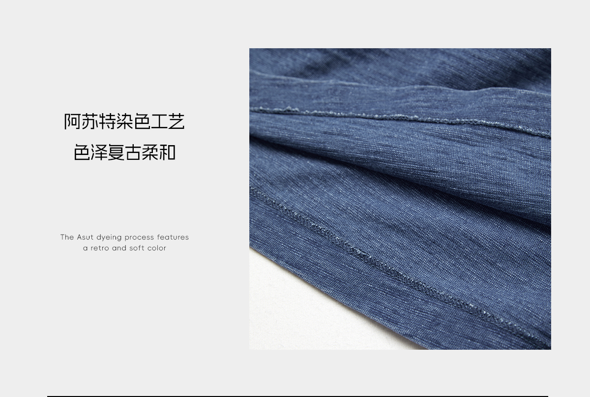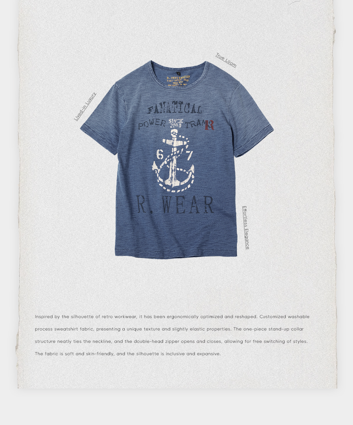 ROMI STUDIO“航海记述”特染竹节棉复古蓝印花短袖T恤RWCAST6257