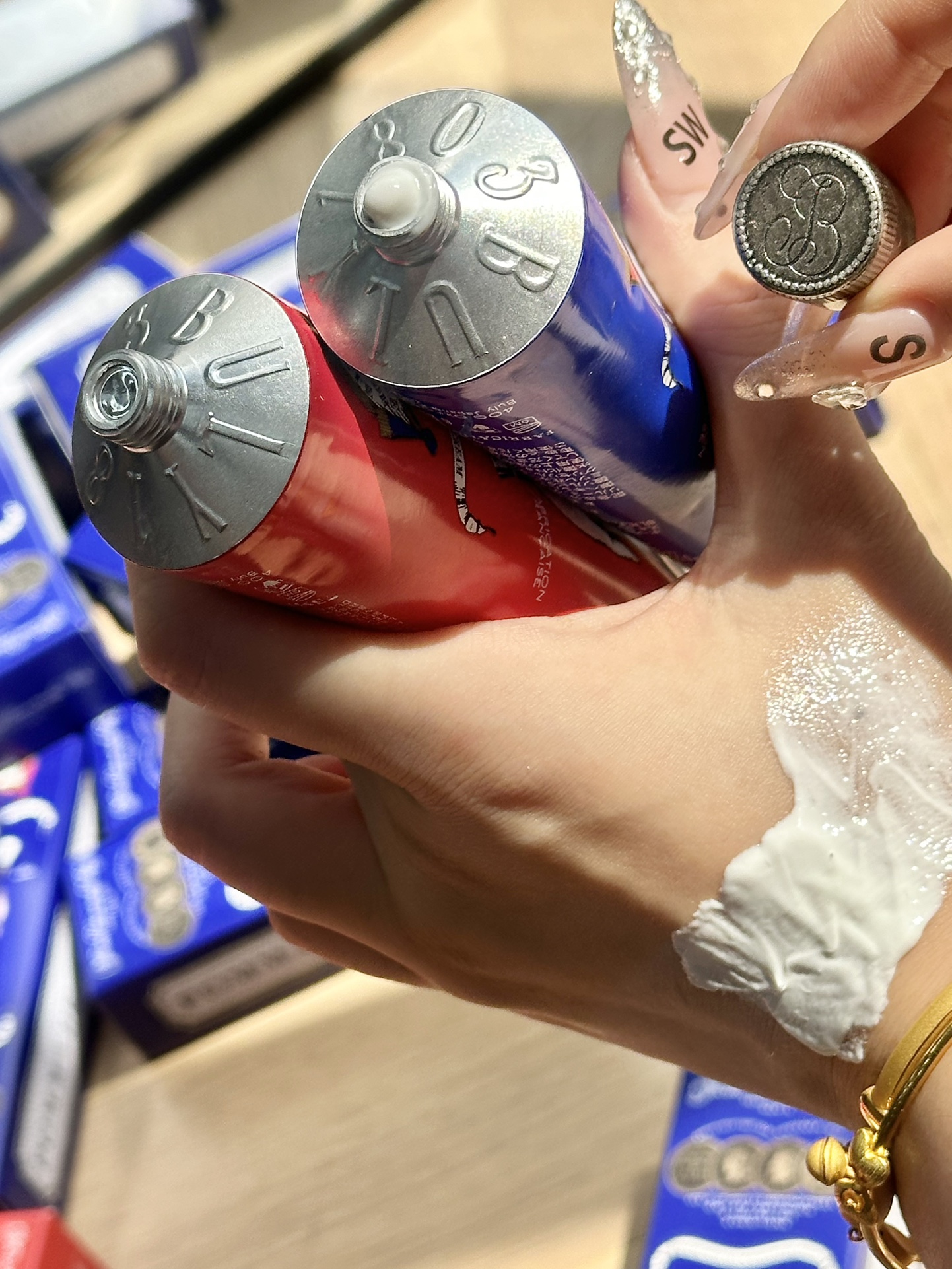 放大看正品的膏体原料颗粒感十足,不像市面上的护手霜很稀,维生素营养颗粒都是高端护肤品才会用到 实物有明显差距,懂货的一眼就可以看得出来是不是正品~