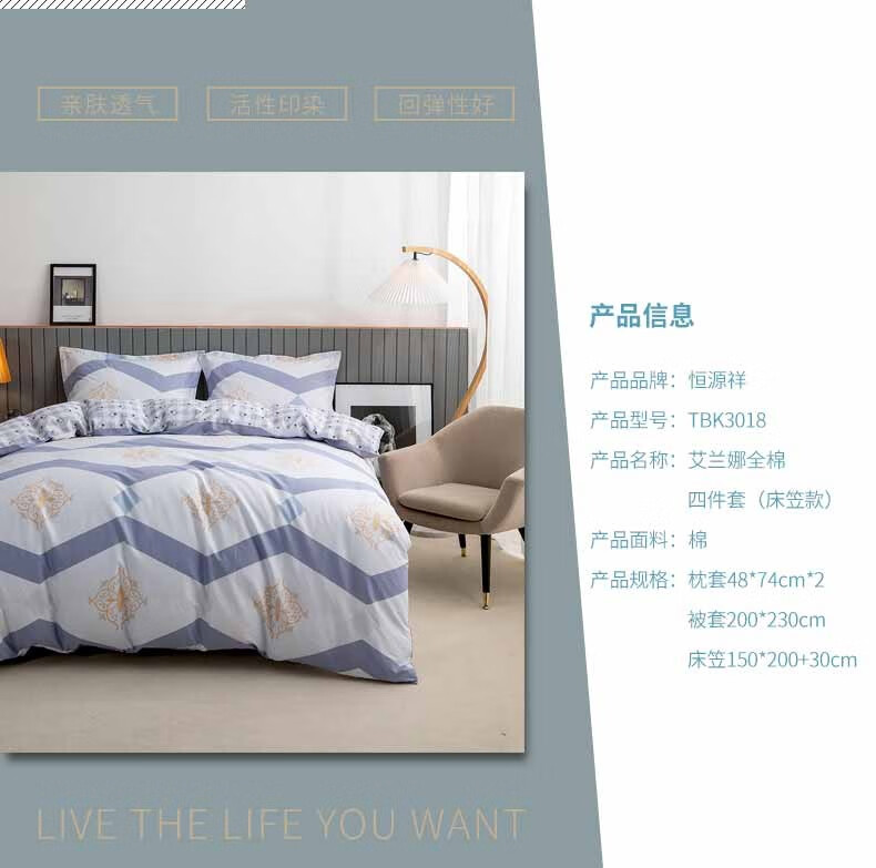 恒源祥(HYX) 恒源祥礼业TBK3018艾兰娜全棉四件套(床笠款) 200*230cm
