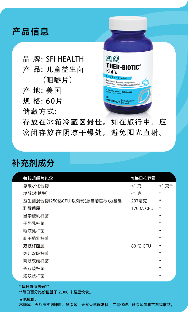 SFI HEALTH 克莱尔实验室Klaire Labs 全XIAO益生菌(儿童咀嚼片)60片 26/1