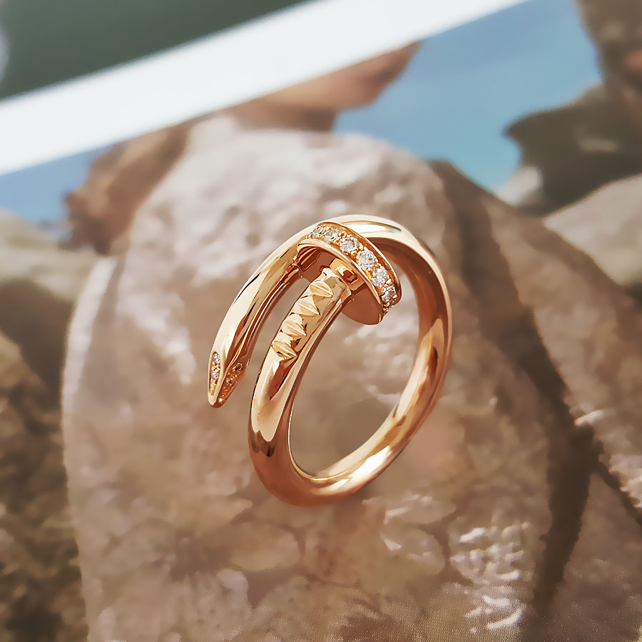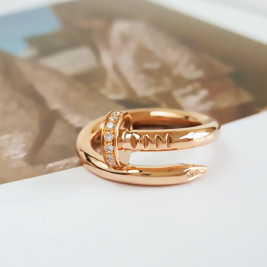 款式 | 18K玫瑰金粗版首尾钻钉子戒指 |