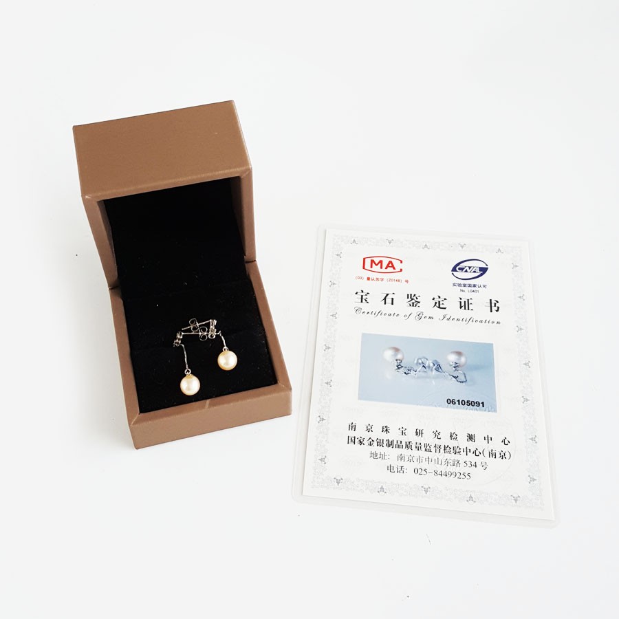 名称 | AU750白金镶钻镶天然近圆约7.1MM珍珠耳坠 |