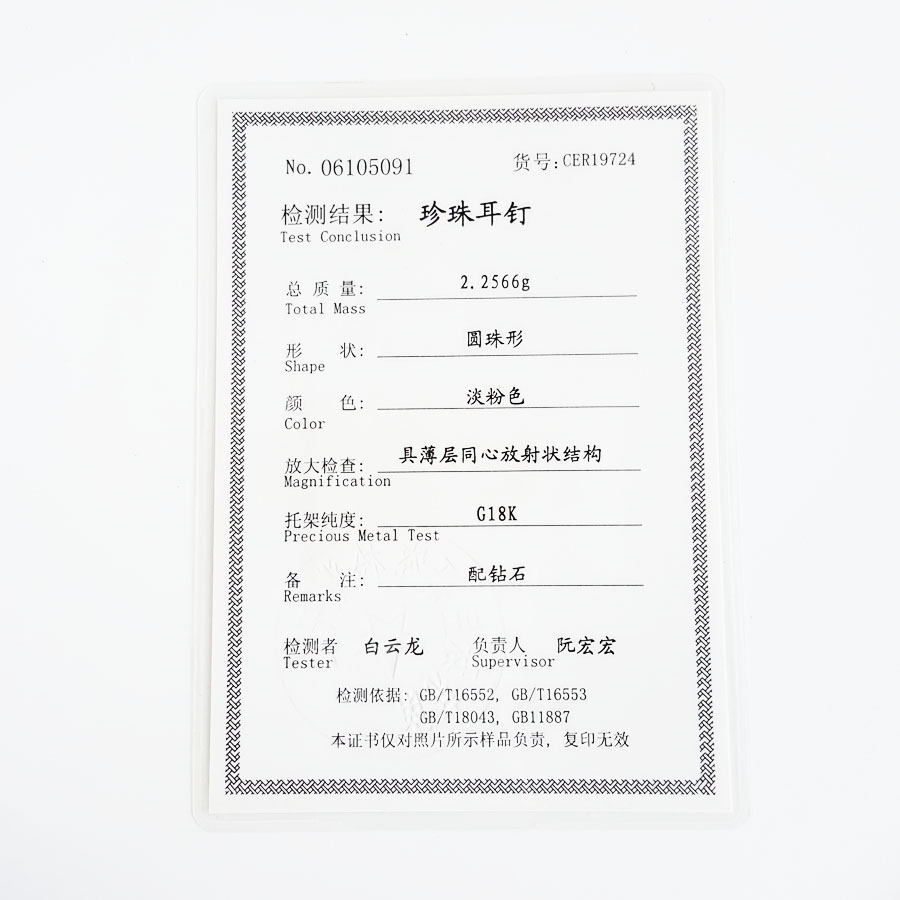 证书 | 国家金银制品质量监督检验中心(南京)证书 |