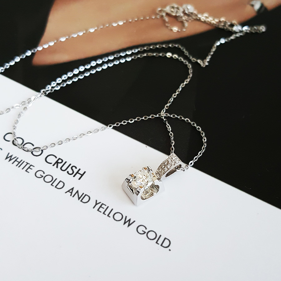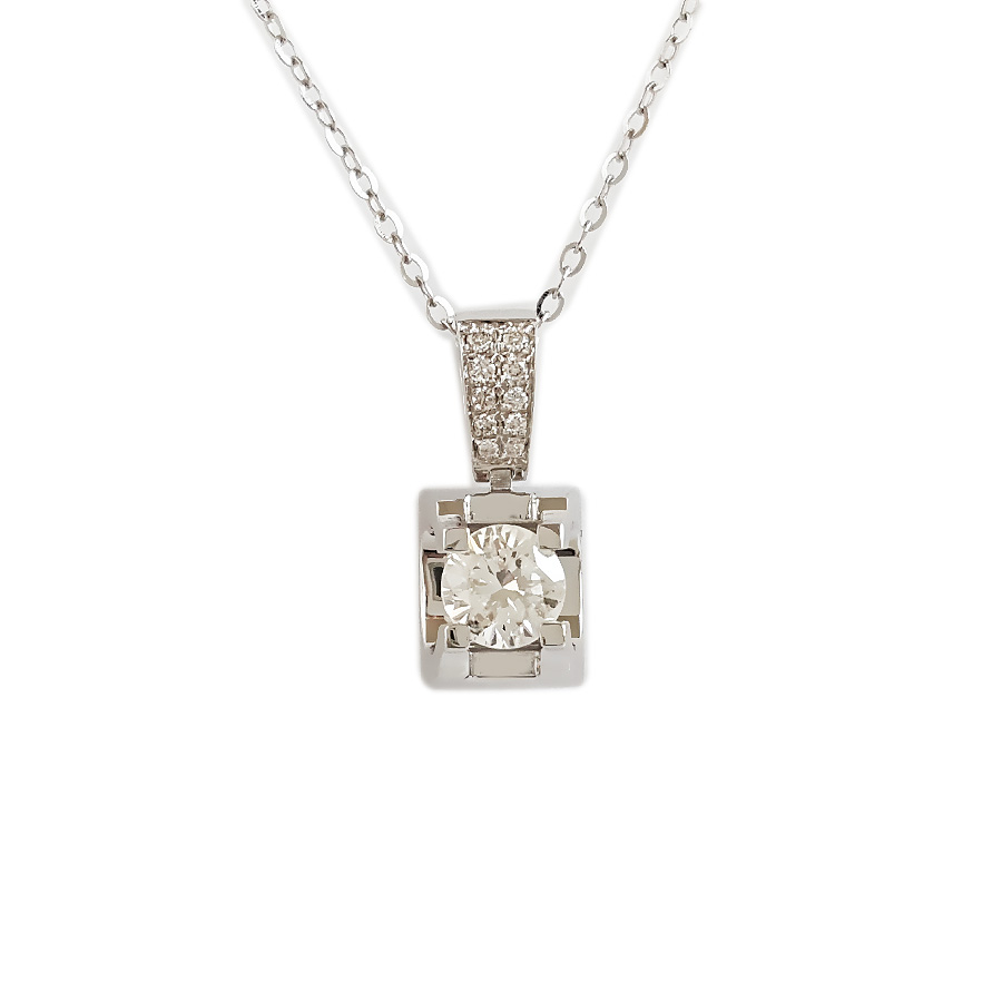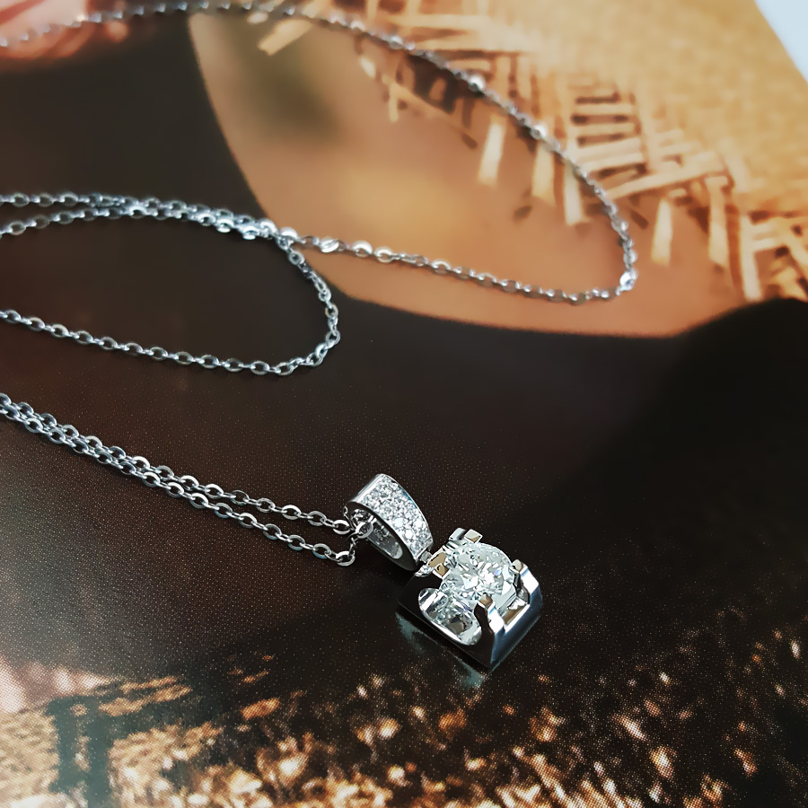 【天然正品】AU750白金简约时尚牛头款0.32克拉钻石吊坠项链 链长:45CM(长度可调节)女士041125DZ05