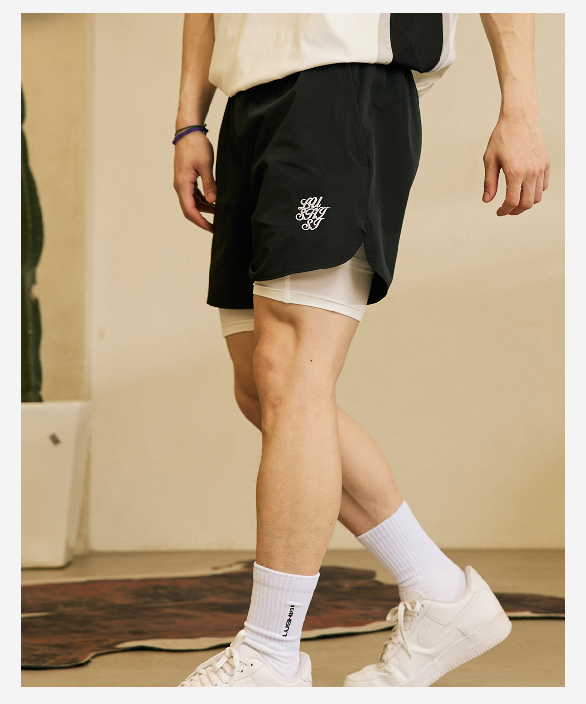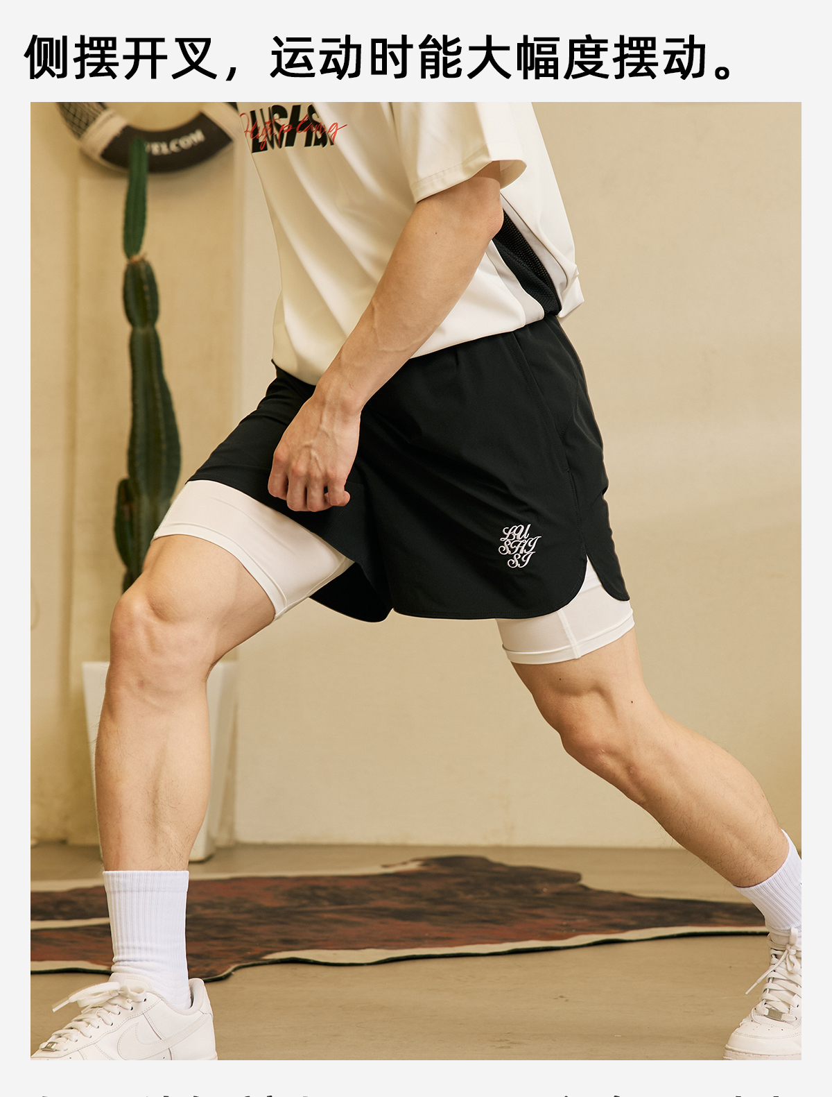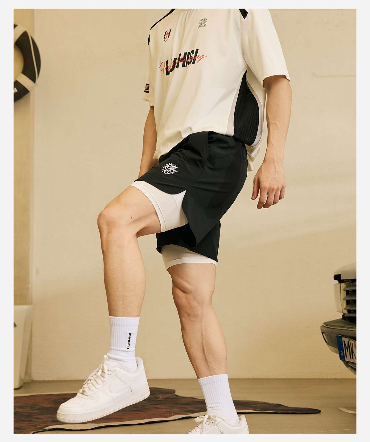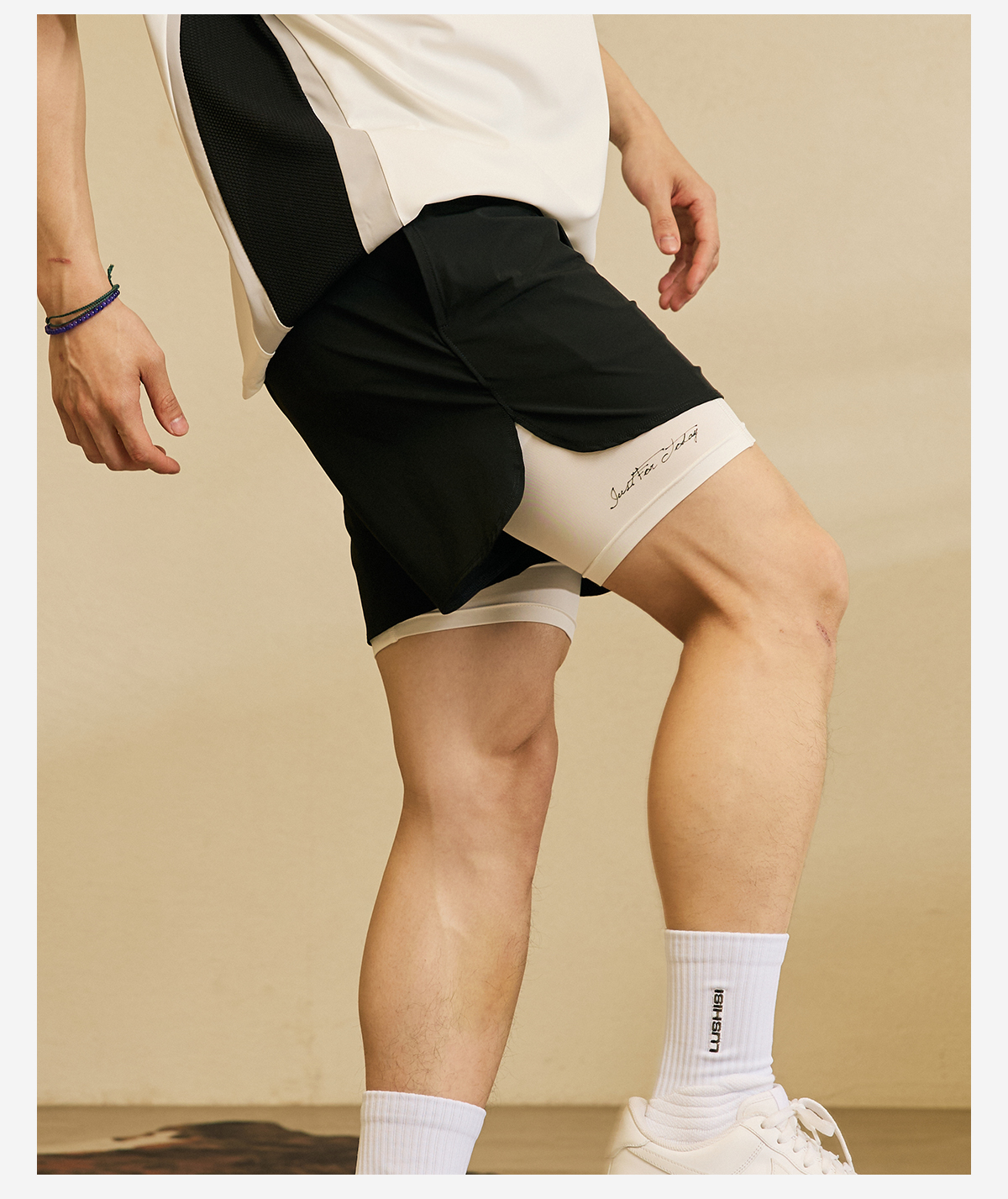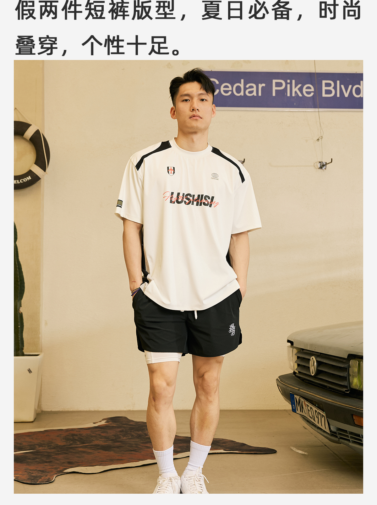 LUSHISI毅力飞驰主题短裤美式运动假两件四五分篮球裤训练健身男