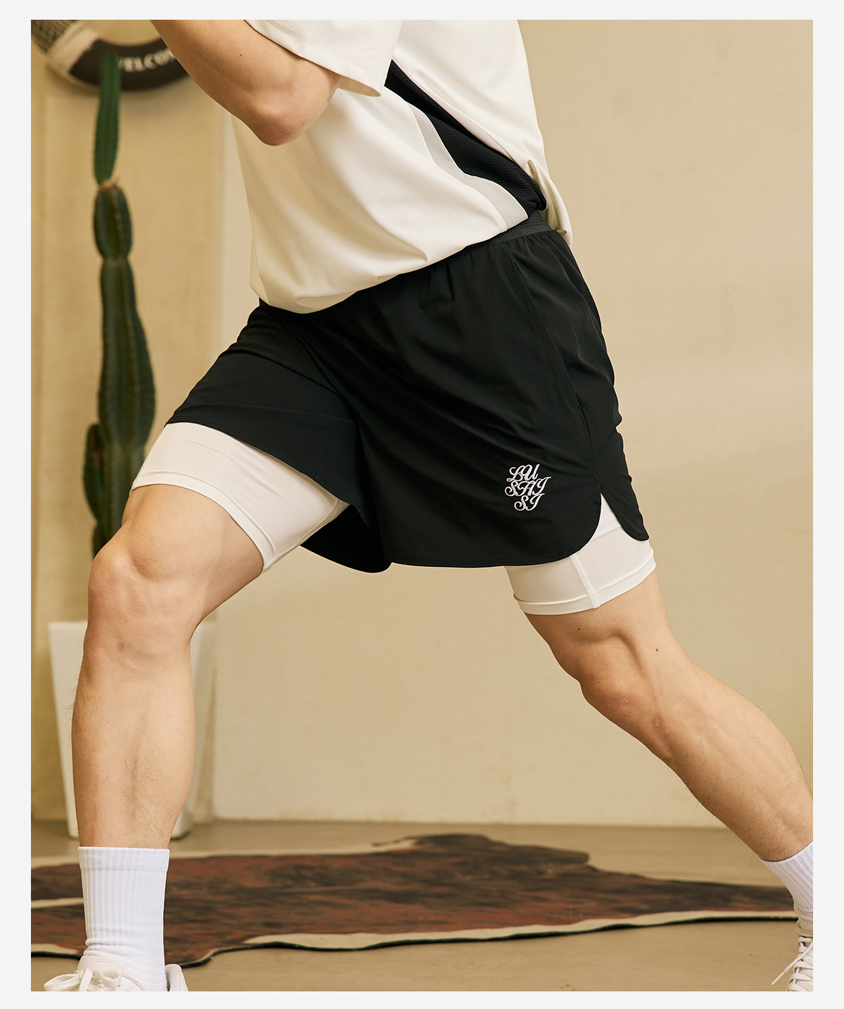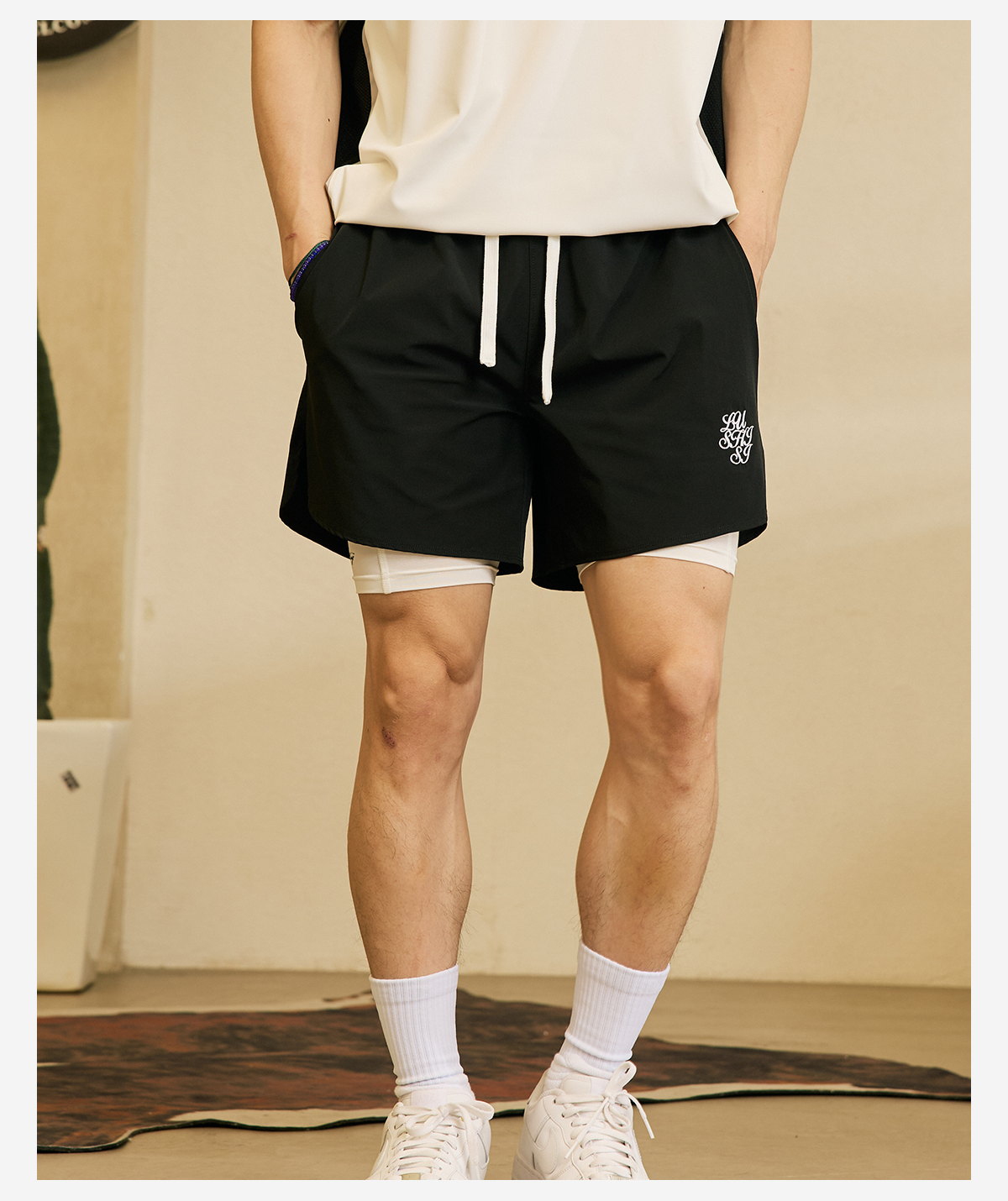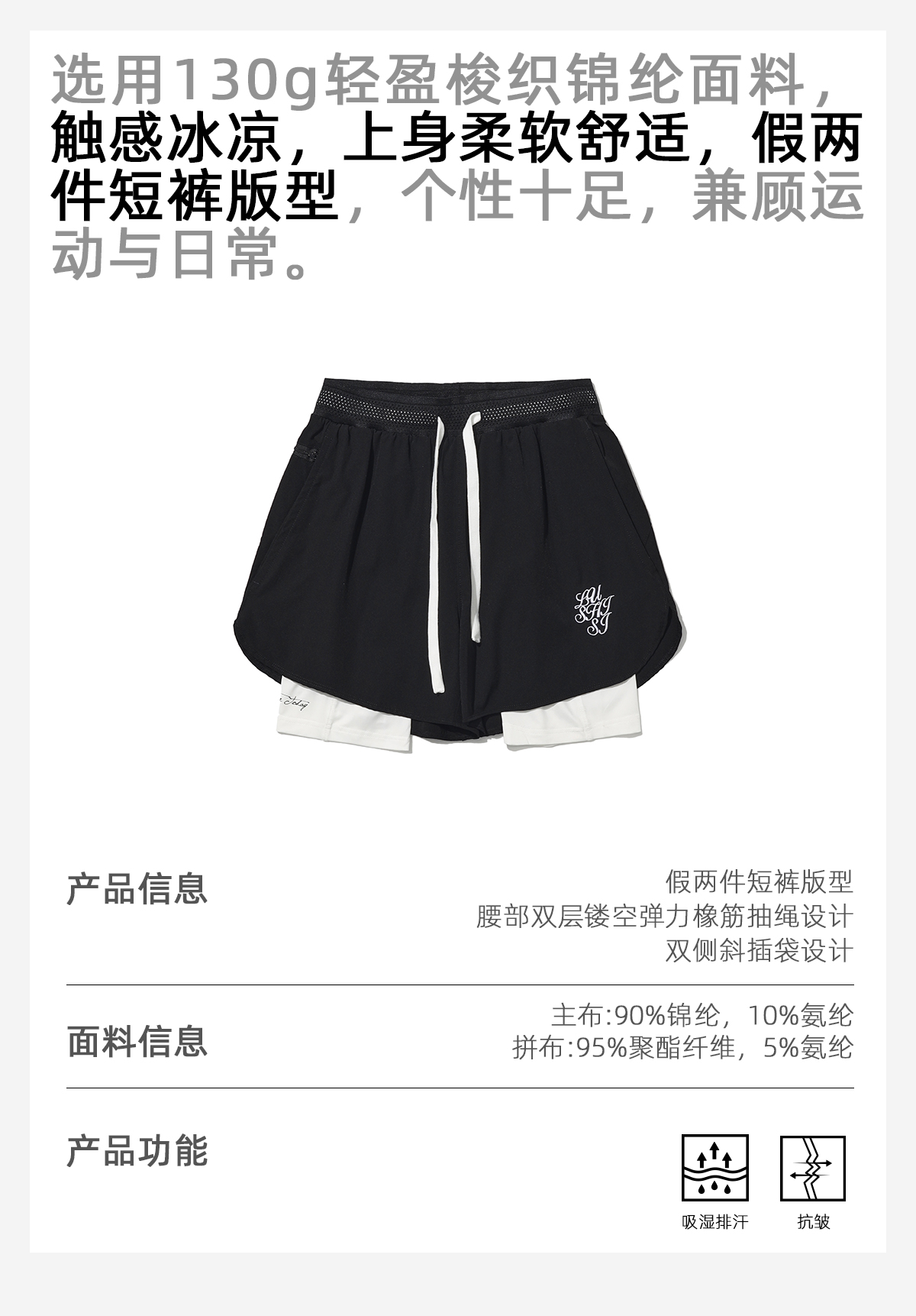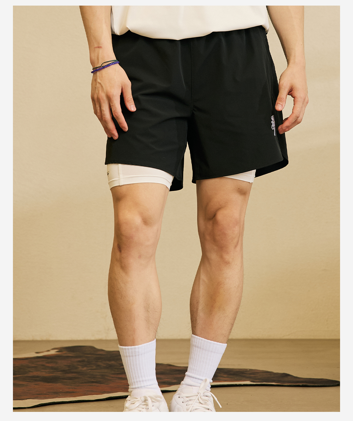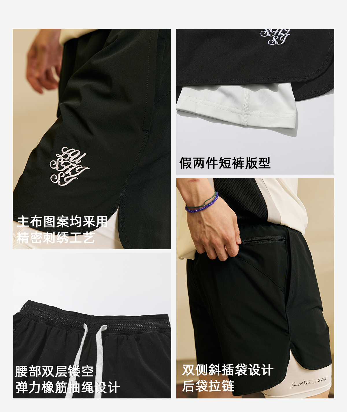 LUSHISI毅力飞驰主题短裤美式运动假两件四五分篮球裤训练健身男