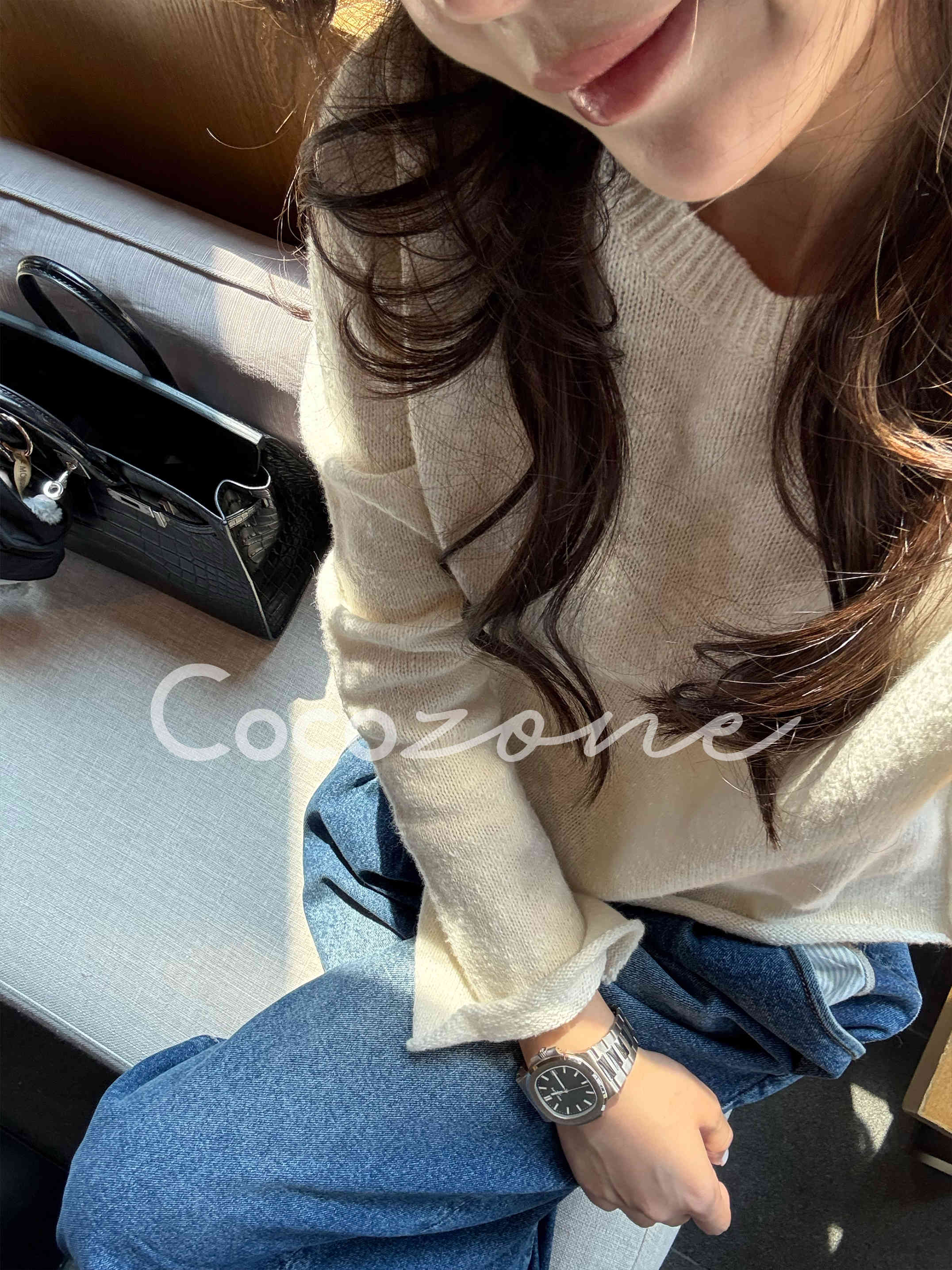 COCO ZONE 刘一一“云朵纱”绵 羊毛混纺纯色毛织上衣 CD2A1651