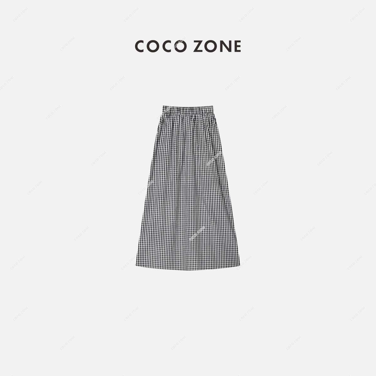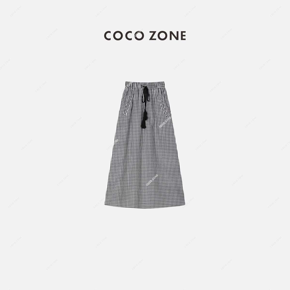 COCO ZONE 新款夏季通勤风格子抽绳半身裙 23C18668