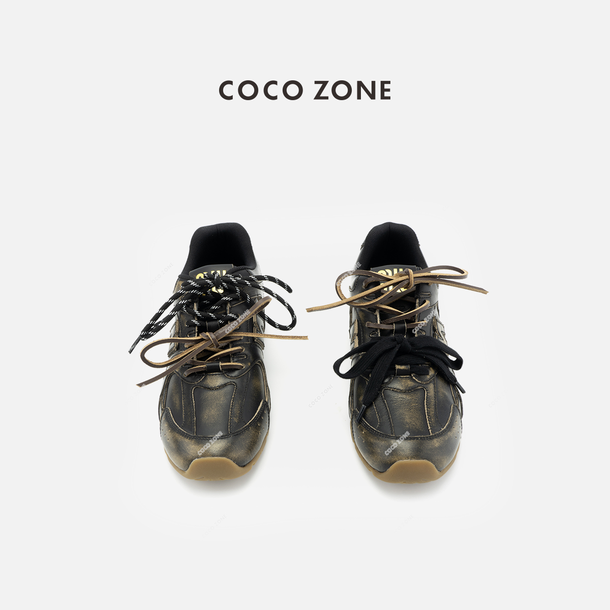 COCO ZONE 复古拼色系带休闲鞋气质百搭德训鞋CC2C1366