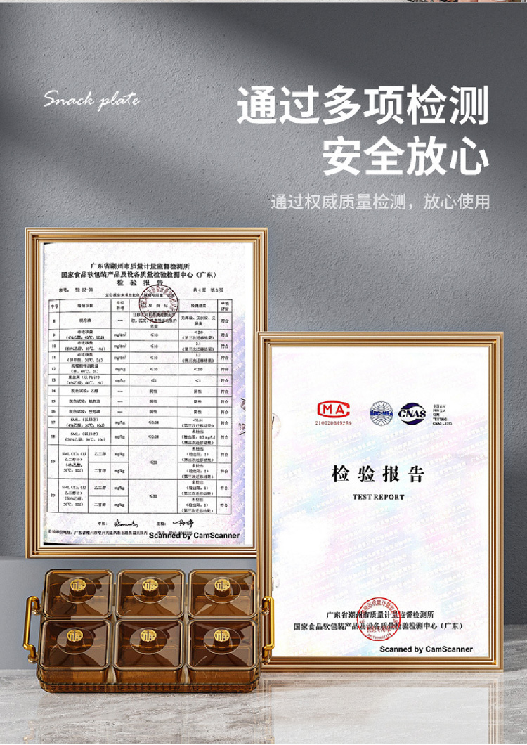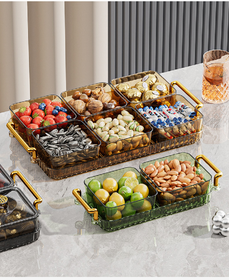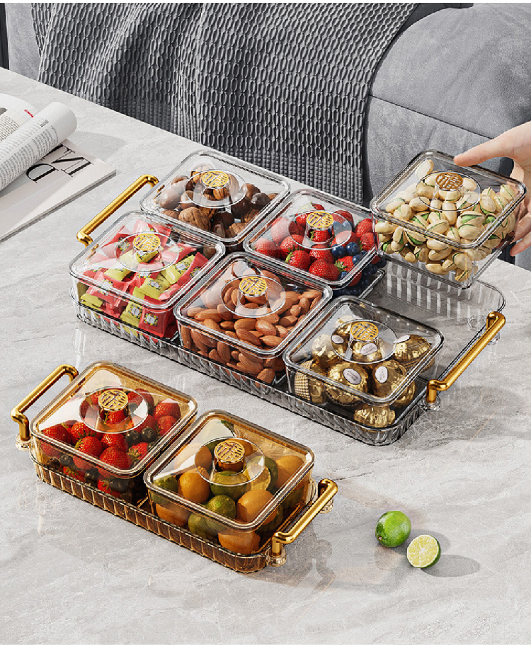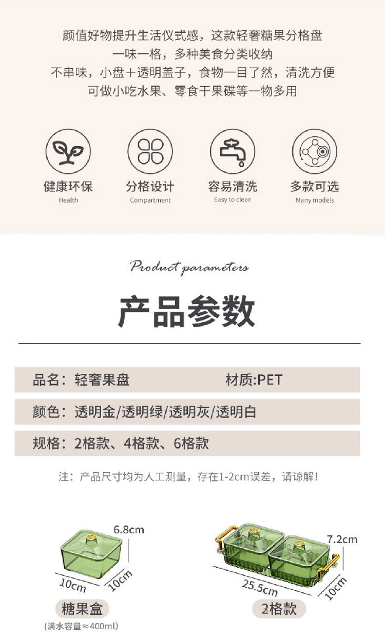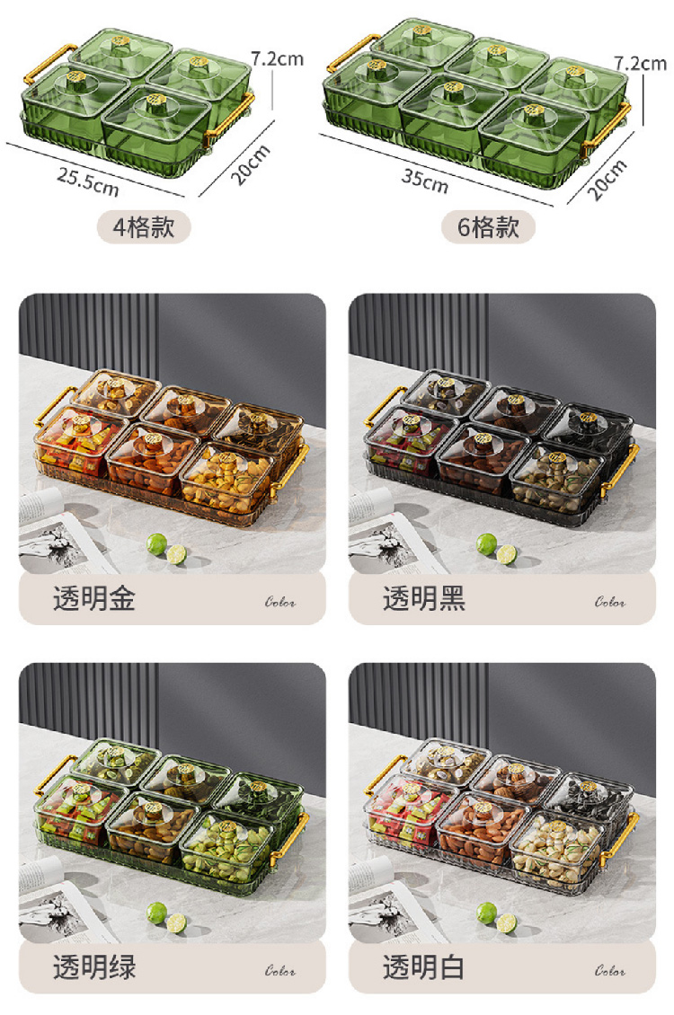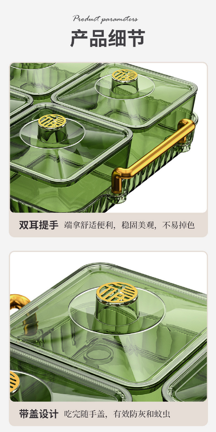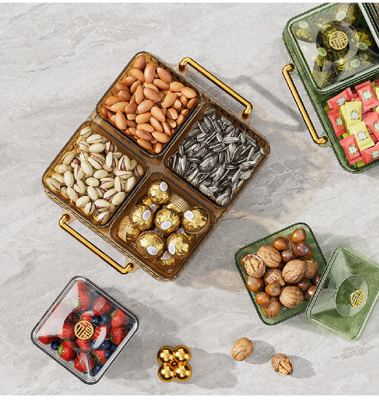 轻奢带盖分格果盘零食拼盘家用塑料托盘客厅水果拼盘零食盘子