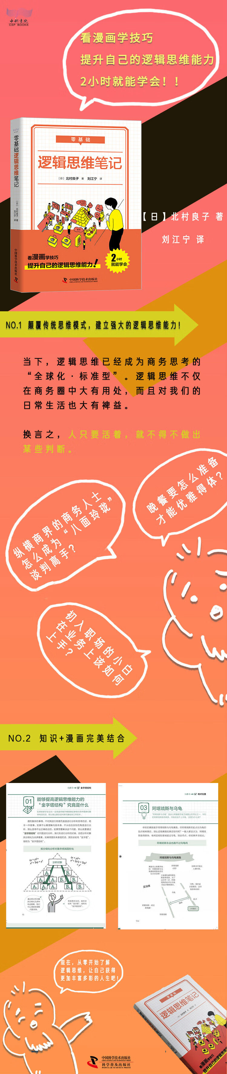 本书讲述了逻辑思维的基本概念及重要性,详细讲解了逻辑思维在日常生活和工作中的运用方法,深入分析了金字塔结构、MECE等逻辑思维技巧,并通过“思考实验”帮助读者锻炼逻辑思维。 无论你是纵横商界的商务人士,还是初入公司的职场小白,都能轻松掌握逻辑思维的技巧,并让自己的逻辑思维能力获得空前提升。逻辑思维不仅适用于商务圈,对我们的日常生活也大有裨益。哪怕是决定晚餐吃什么这样一件小事,也要考虑冰箱中的食材、共同进餐的其他人的喜好等要素,并运用逻辑思维对这些要素进行整合。 人只要活着,就必须拥有逻辑思维!现在,从零开始了解逻辑思维,让自己获得更加丰富多彩的人生吧!