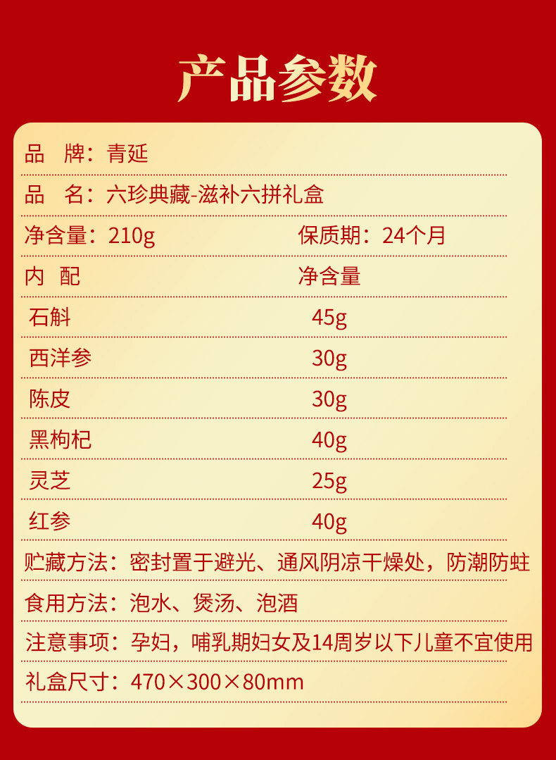 青延滋补六珍典藏-六拼礼盒210g