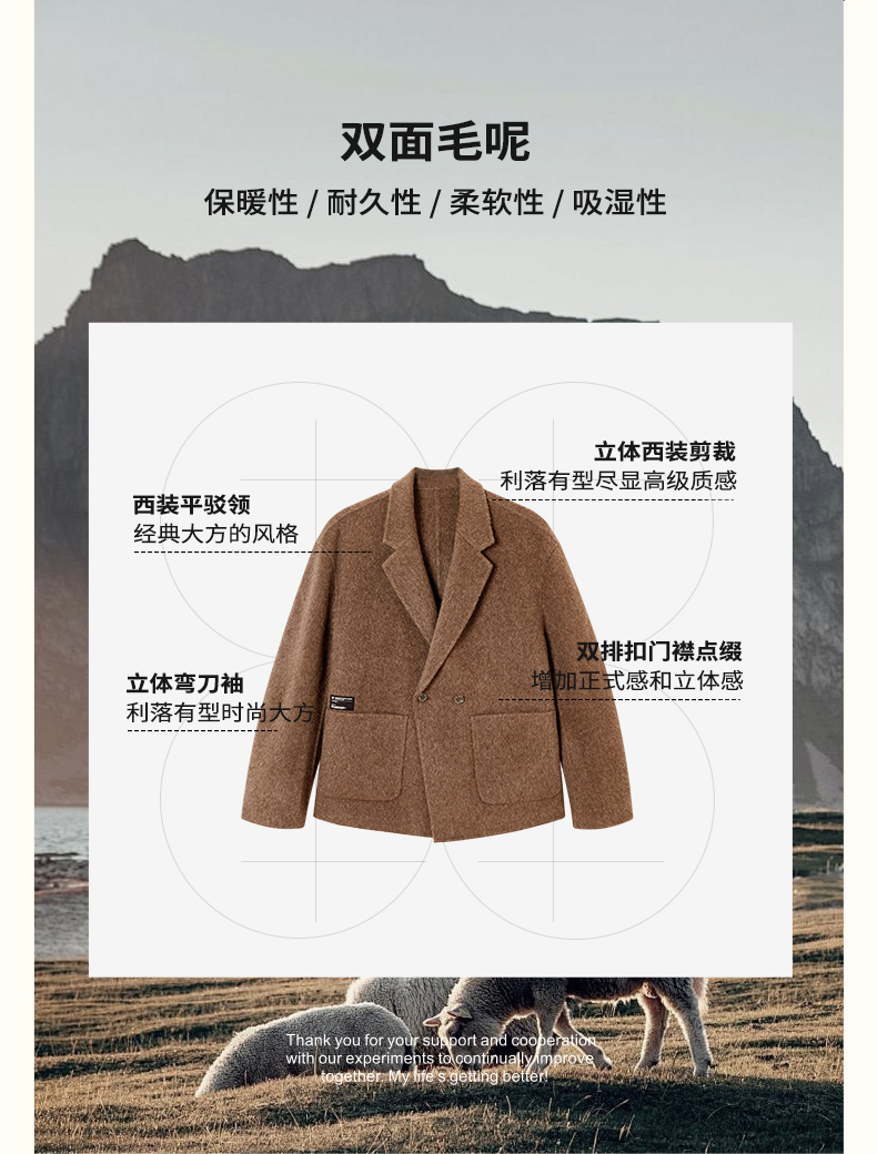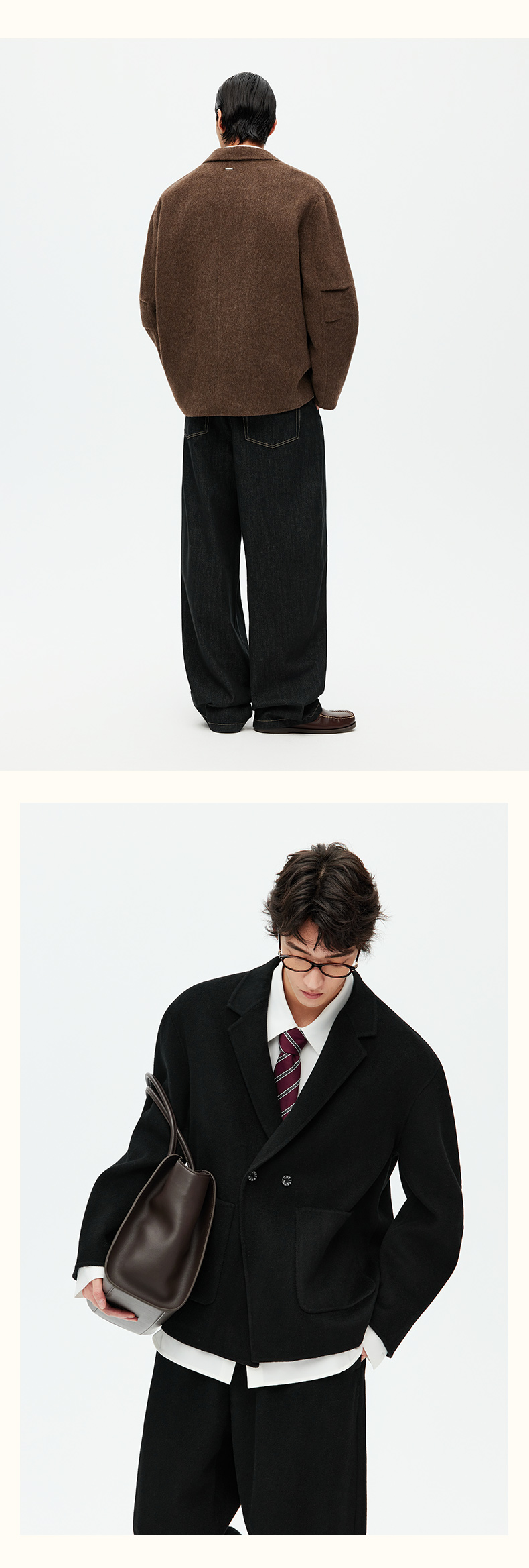 NPC潮牌老钱静奢风100%绵羊毛双排扣毛呢西服男简约复古NP58WC28