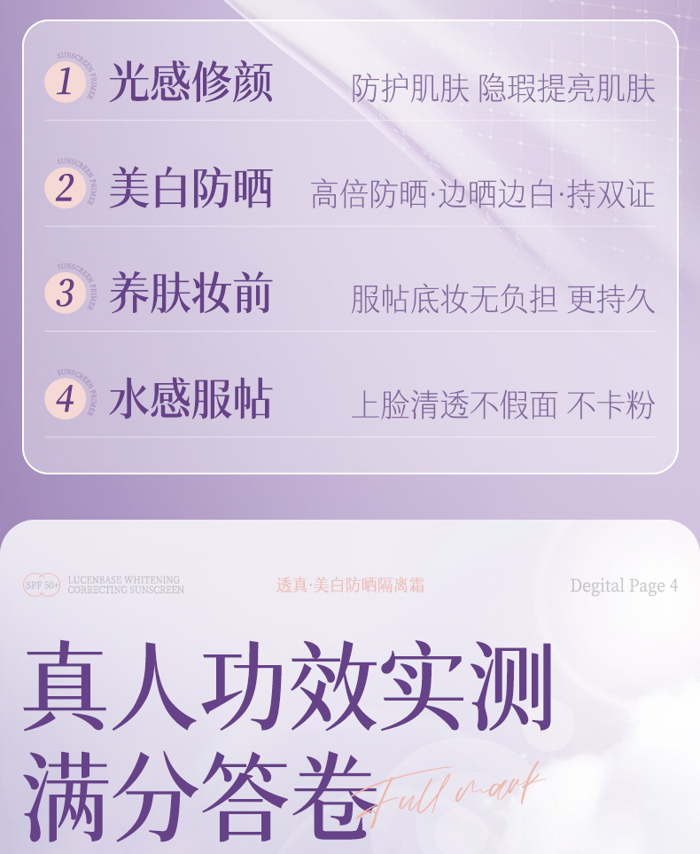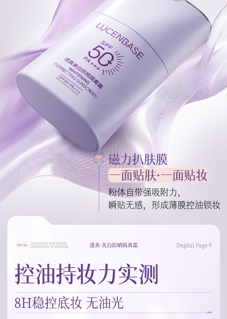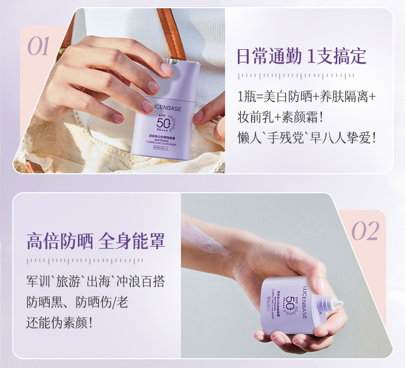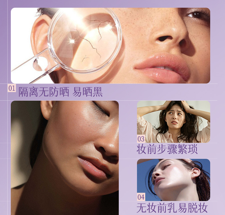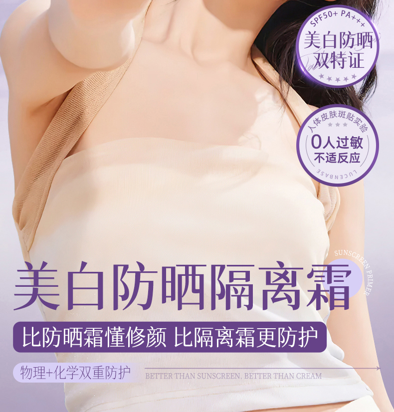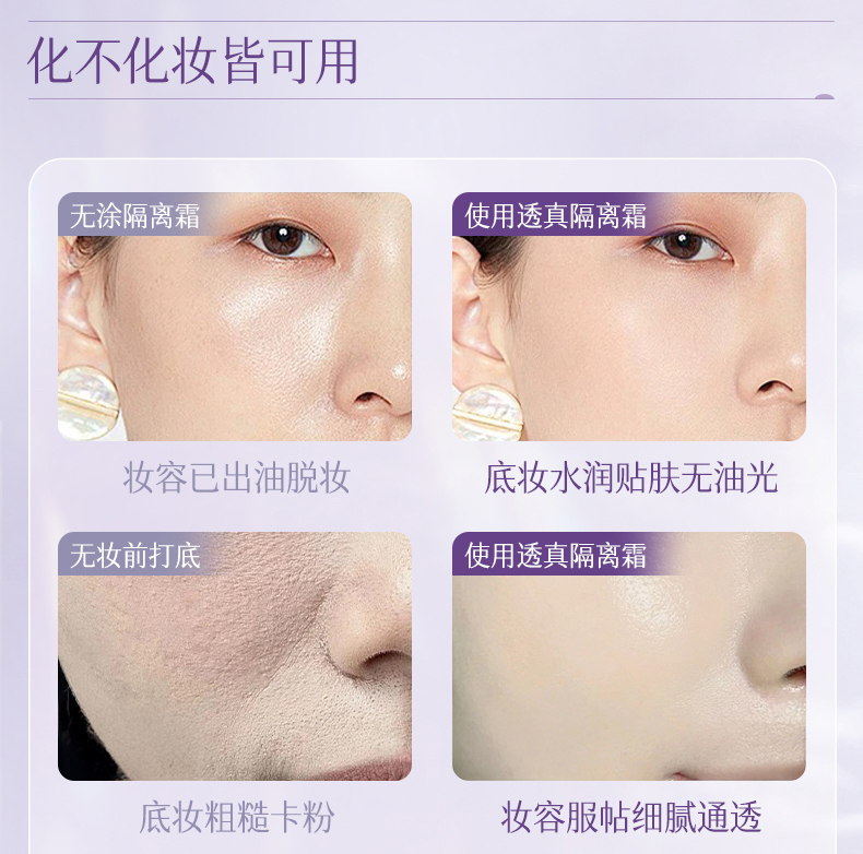 【1抹提亮肤色 24H水润持妆】隔离霜遮瑕三合一提亮肤色防晒素颜霜妆前乳紫色正品官方旗舰店