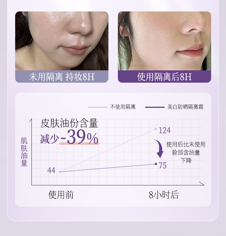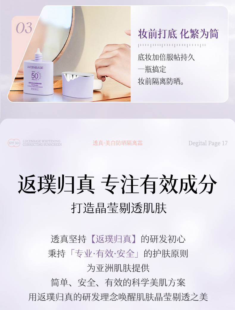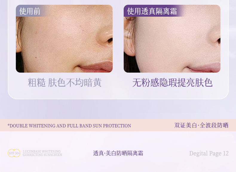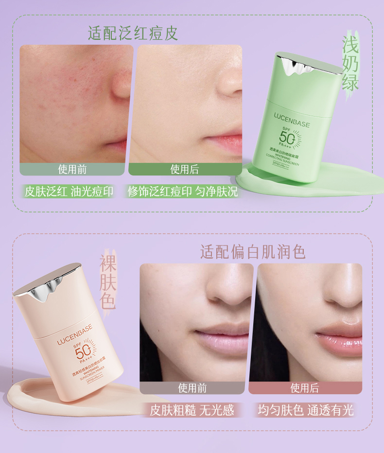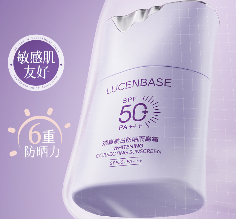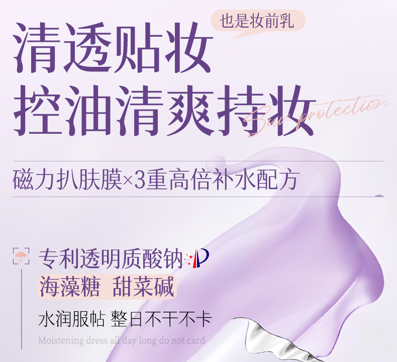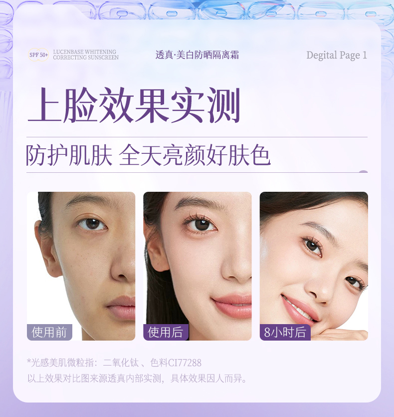 【1抹提亮肤色 24H水润持妆】隔离霜遮瑕三合一提亮肤色防晒素颜霜妆前乳紫色正品官方旗舰店