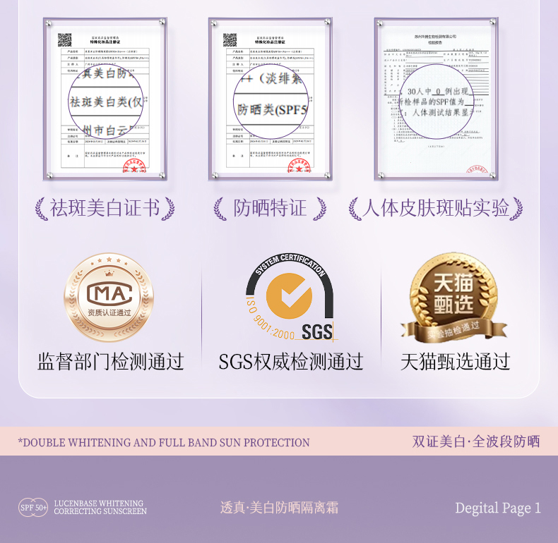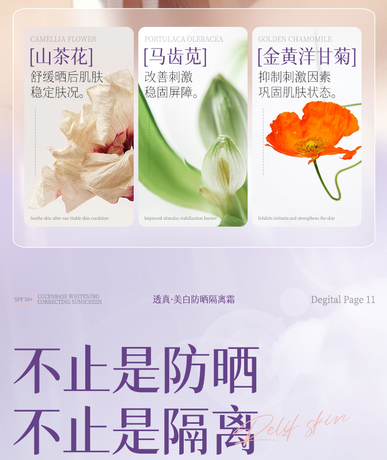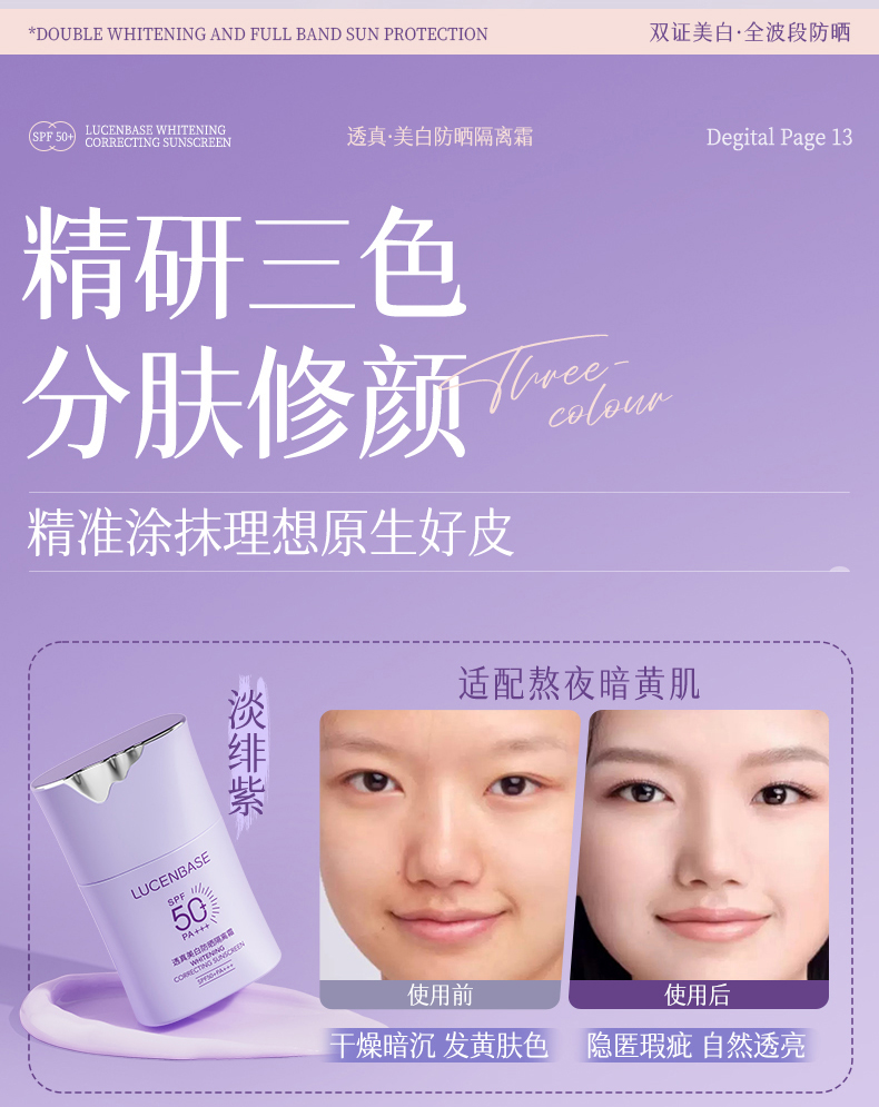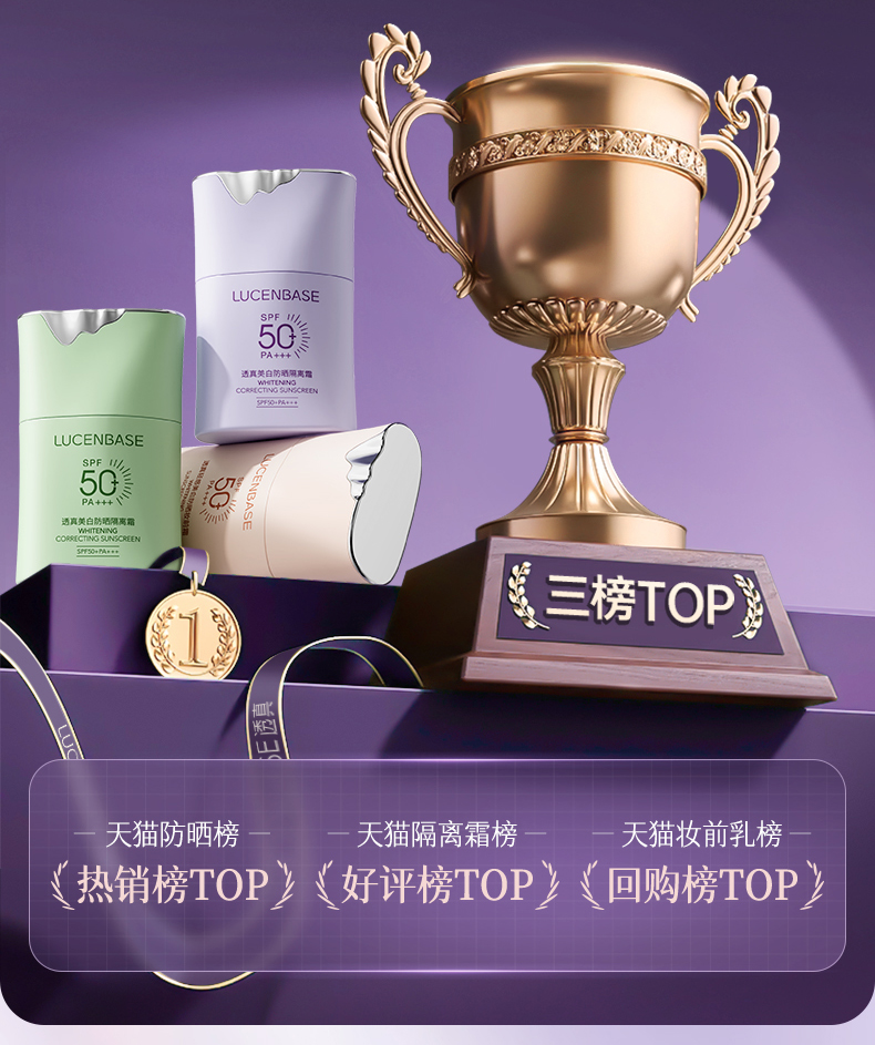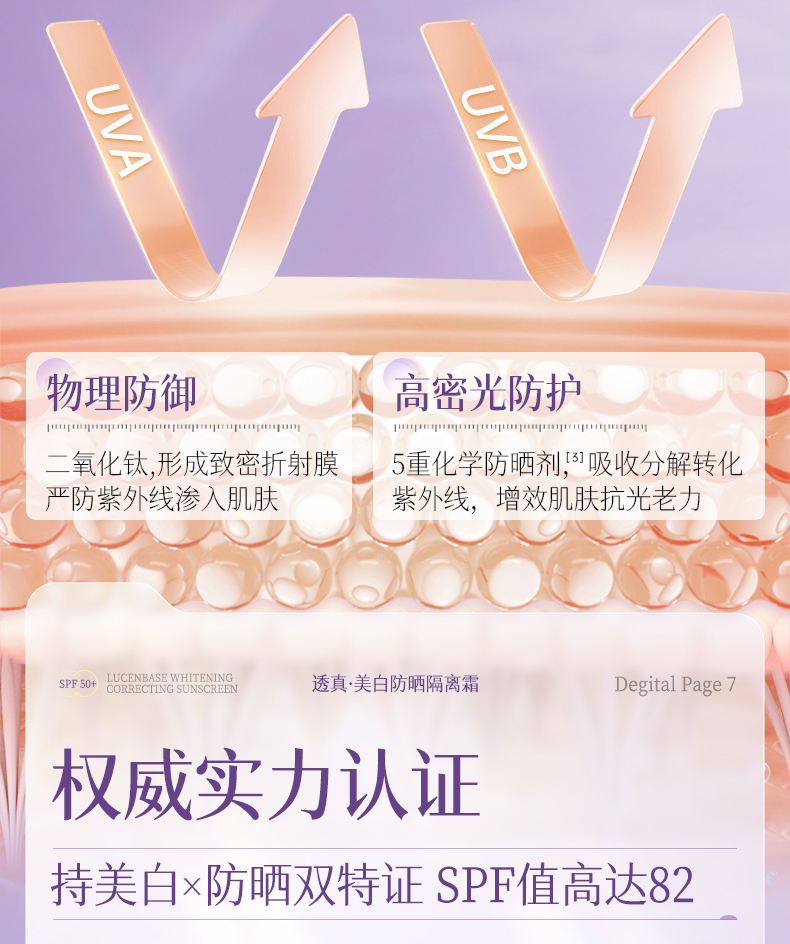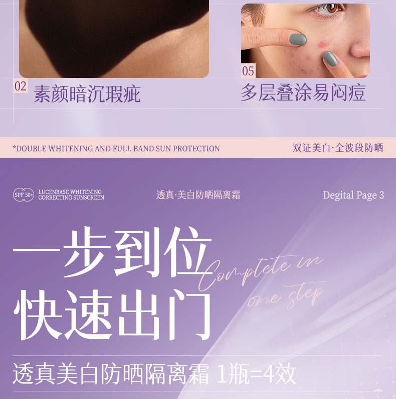 【1抹提亮肤色 24H水润持妆】隔离霜遮瑕三合一提亮肤色防晒素颜霜妆前乳紫色正品官方旗舰店