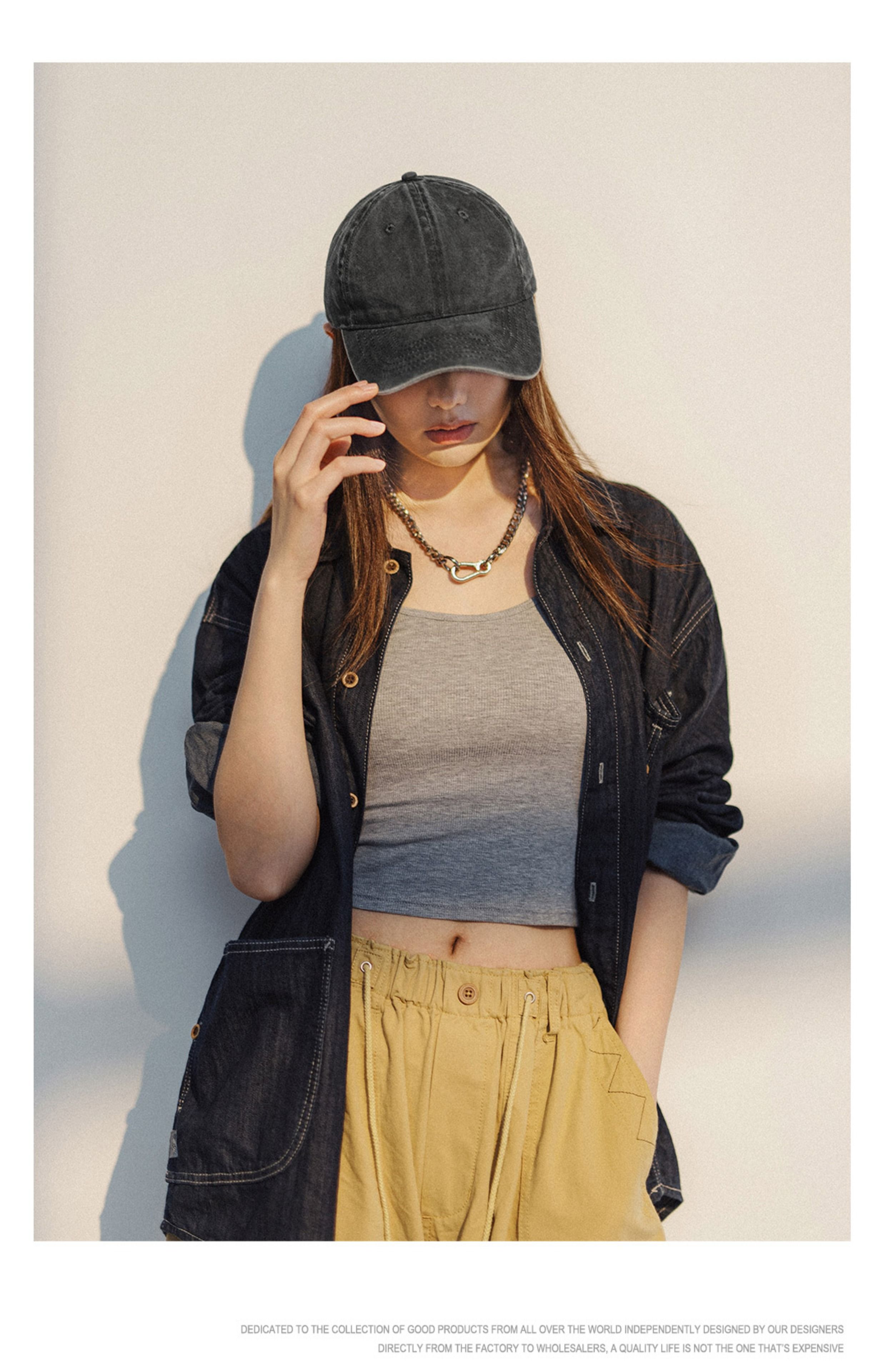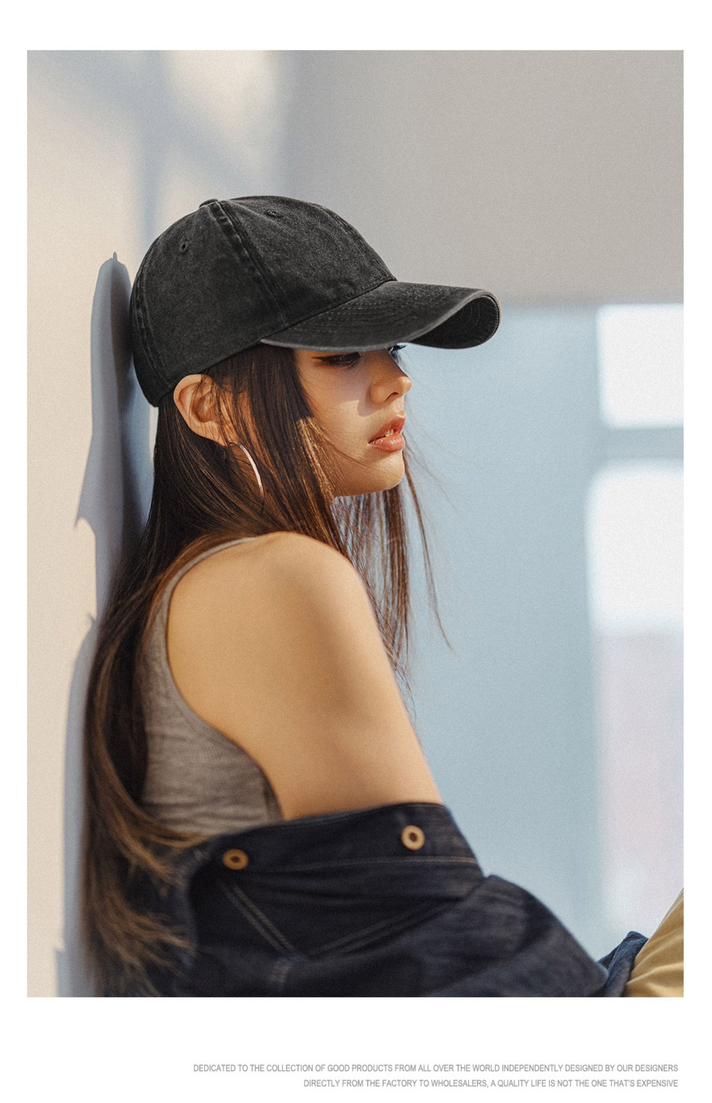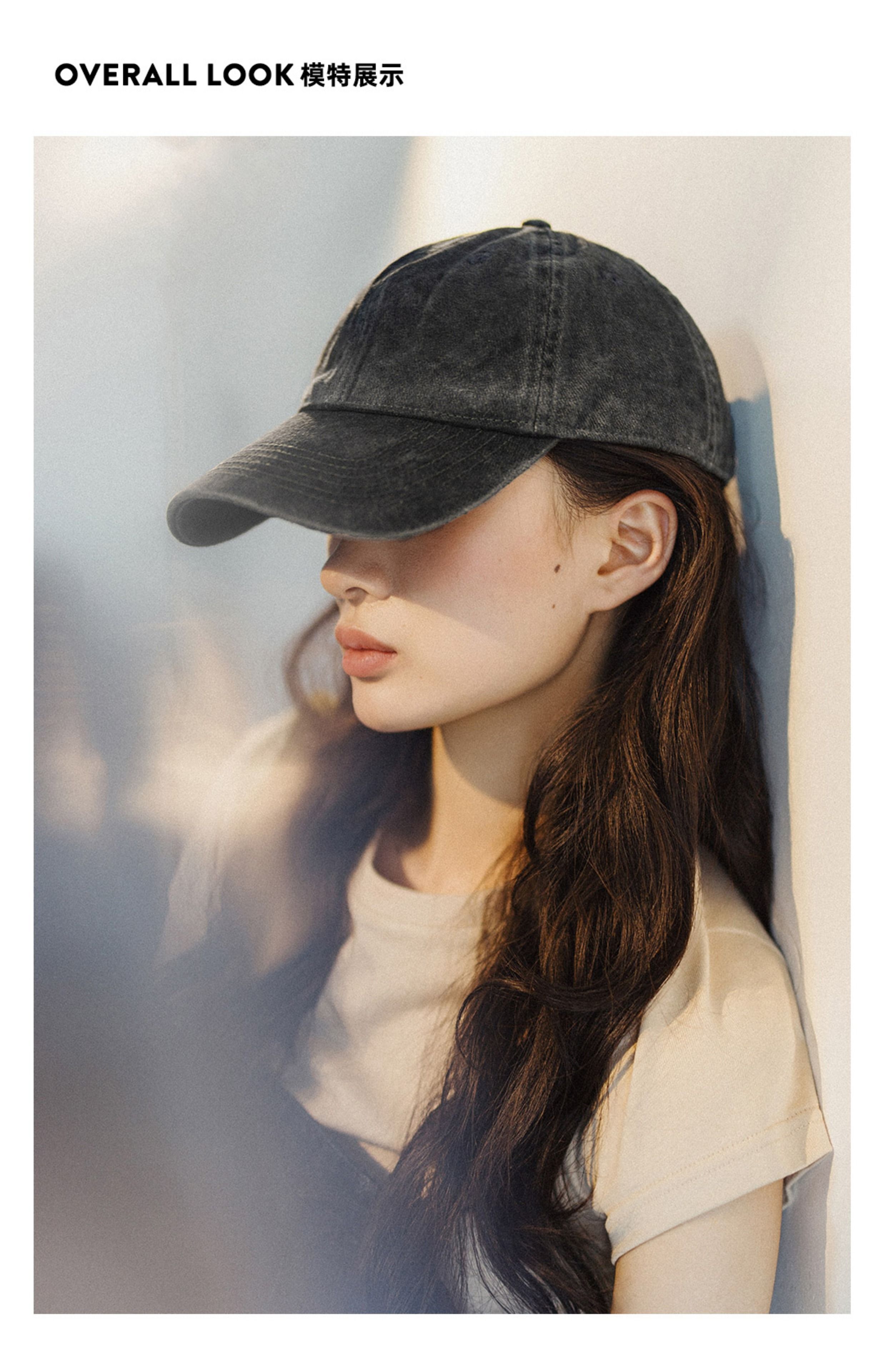 马登磨毛做旧大帽檐棒球帽女生显脸小鸭舌帽大头围防晒遮阳帽女夏