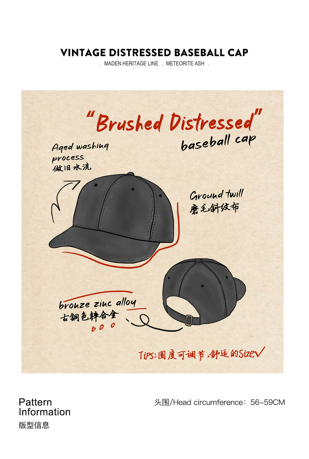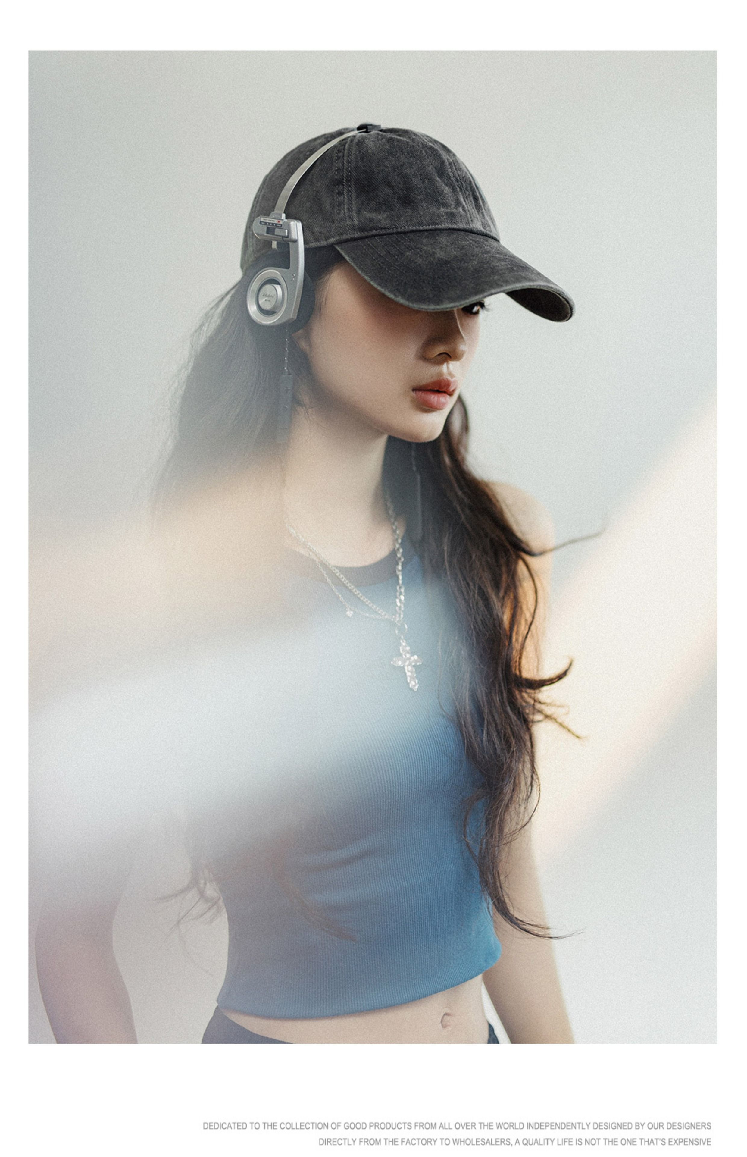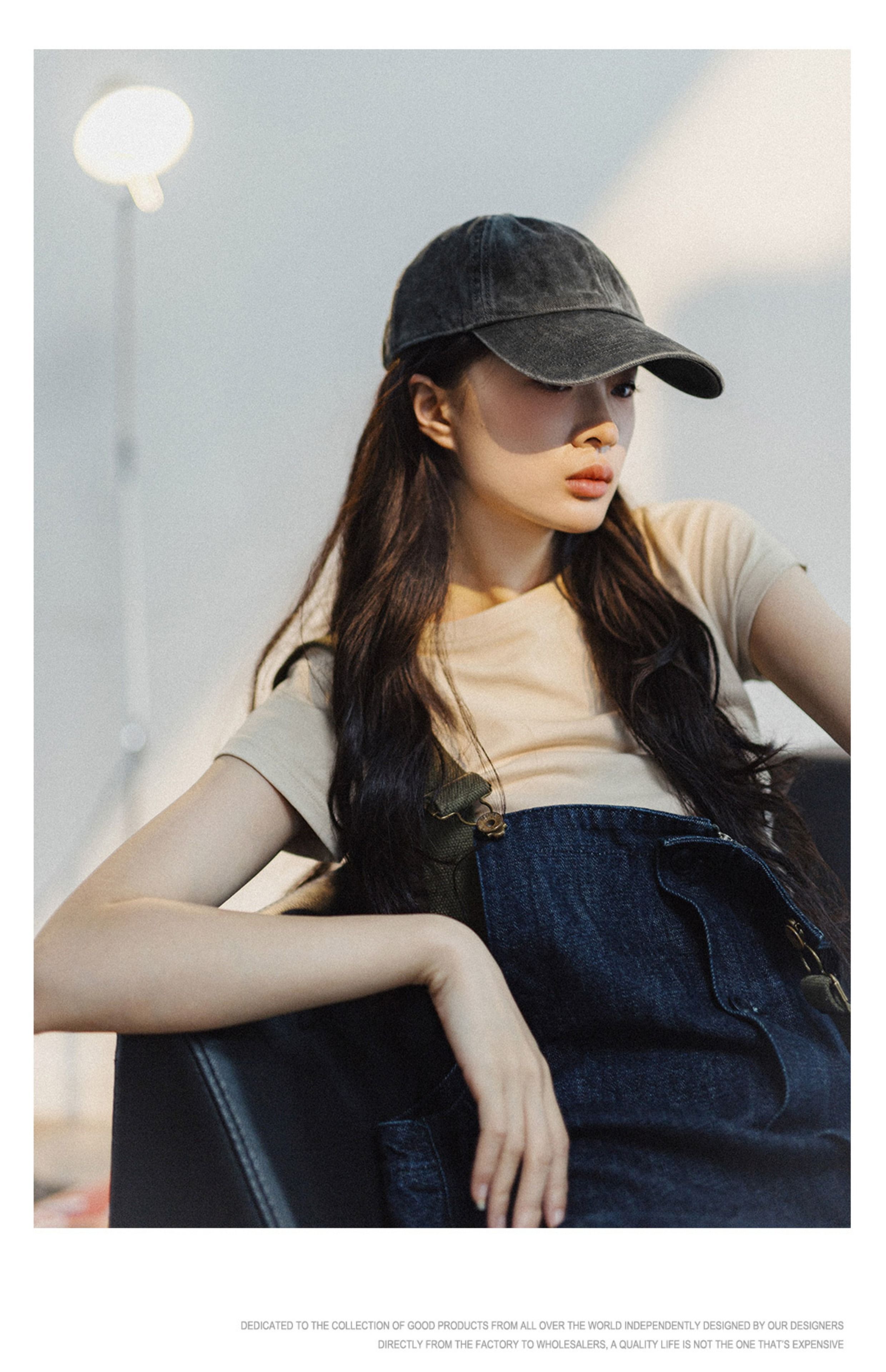 马登磨毛做旧大帽檐棒球帽女生显脸小鸭舌帽大头围防晒遮阳帽女夏