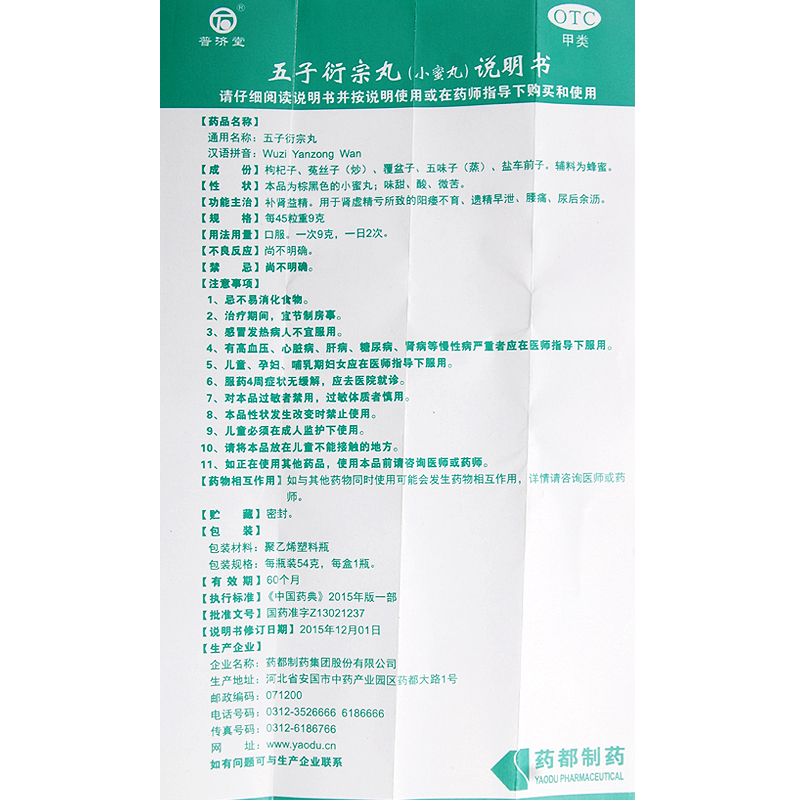 普济堂 五子衍宗丸54g/瓶 男性补肾中药阳痿不育遗精早泄肾阳亏虚