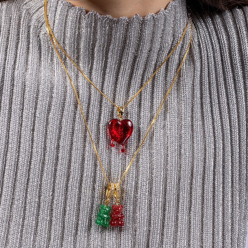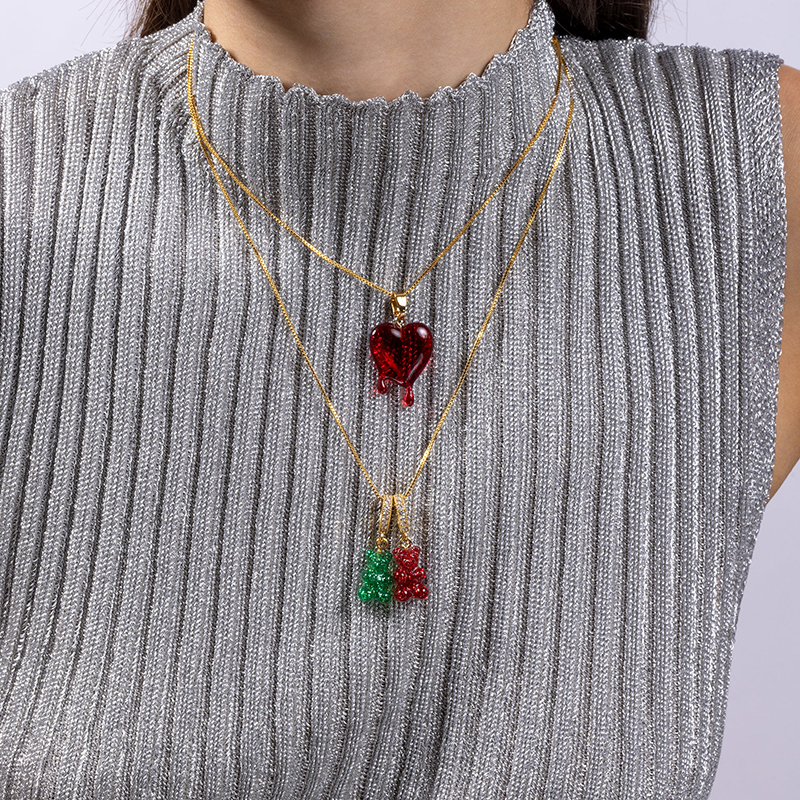 订购4周到|CRYSTAL HAZE-Nostalgia Bear-pave-雾绿色小熊 吊坠(金色环扣)[挪威设计师]