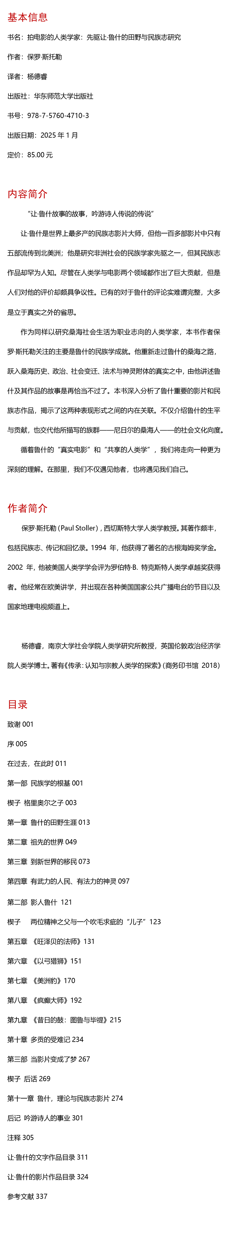 拍电影的人类学家 先驱让·鲁什的田野与民族志研究 保罗·斯托勒 薄荷实验