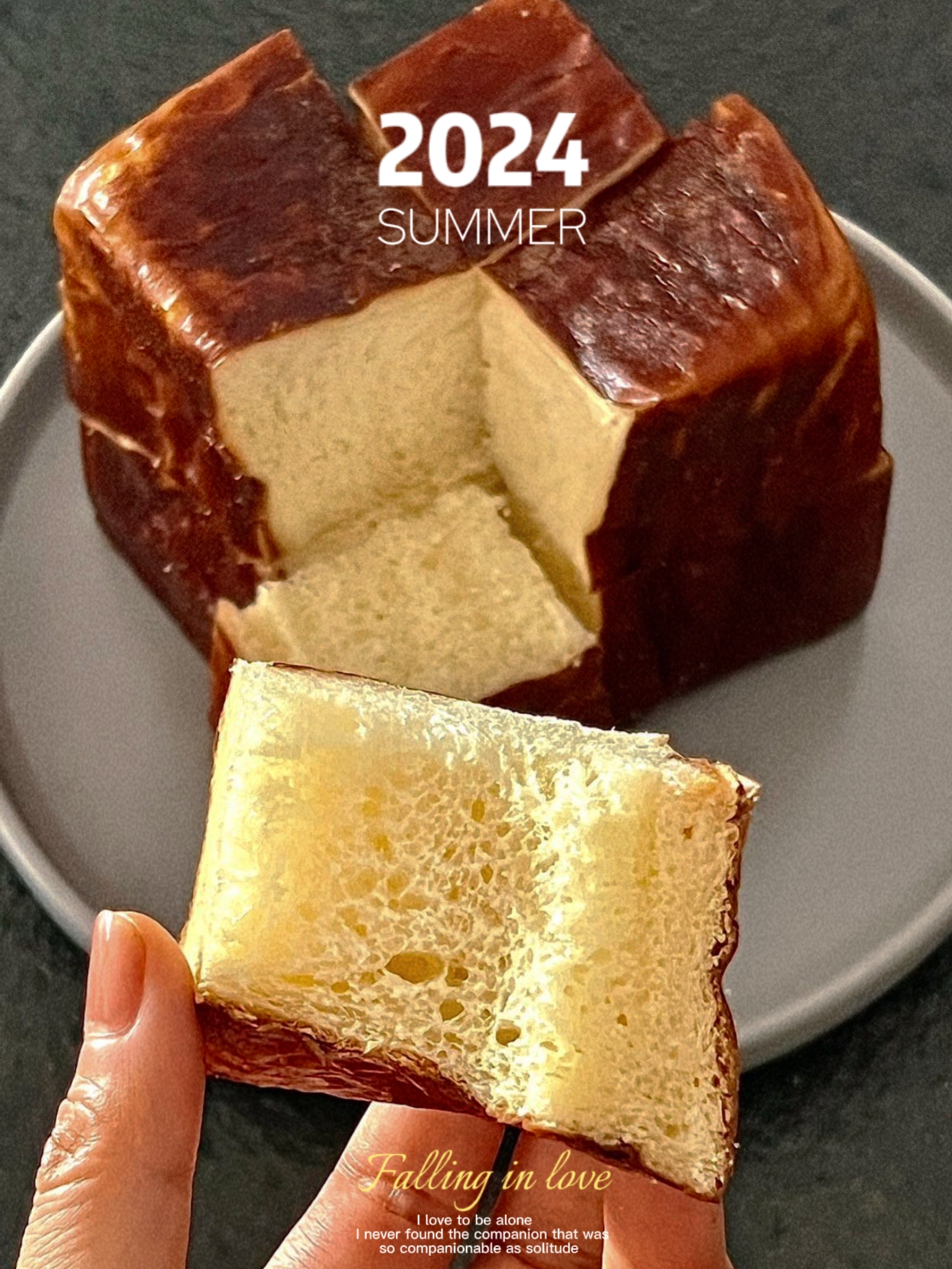 碱水吐司,依然是纯手工,从制作到出炉,历经四次发酵,每一次都是对时间的尊重和对温度的精准把控。好的口感不仅源自精湛的工艺,更得益于优质的原料。配料表清晰明了,仅包含:小麦粉、牛奶、淡奶油、鸡蛋、炼乳、黄油、饮用水、白砂糖、奶粉、蜂蜜、海盐、酵母、烘焙碱。而且配料表中的饮用水实际上是用于制作老面时的少量添加,吐司的主要液体成分均为牛奶和淡奶油,不仅提升了营养价值,更让面包的香气与口感达到了新的高度。